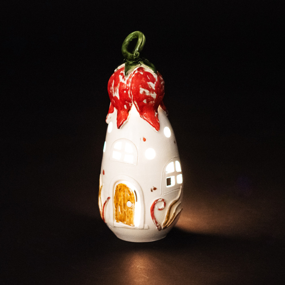 Šis keraminis sandarinimo namas yra ne tik išskirtinis apdaila, bet ir žvakių laikiklis, kuris atitinka jūsų namus su šviesa ir šiluma. Jūs galite pakabinti Tealight namą prie namų įėjimo, terasoje ar ant balkono, arba galite jį įdėti į namus ant palangės, ant stalo ar ant lentynos.