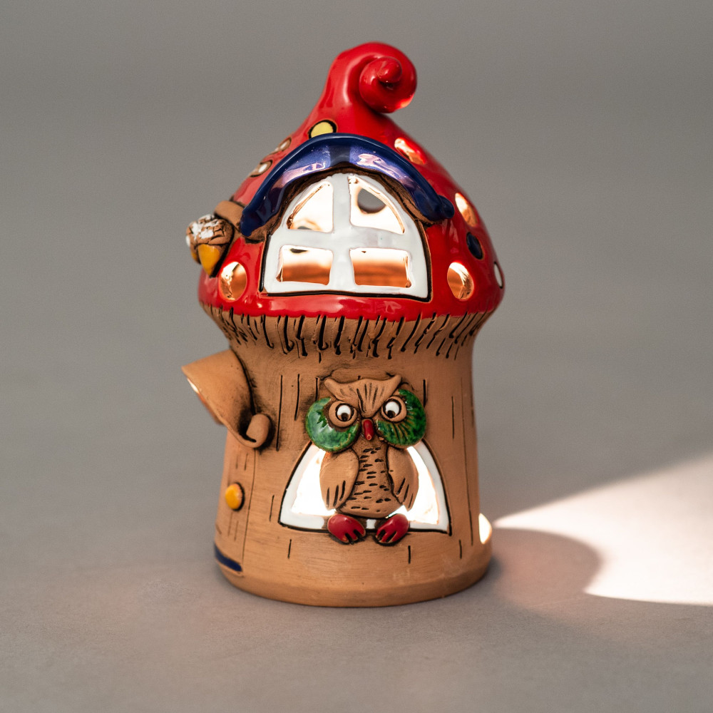 Dieses Keramikteelichthaus ist nicht nur eine exklusive Dekoration, sondern auch ein Kerzenhalter, der Ihr Haus mit Licht und Wärme erfüllt wird. Man kann das Teelichthaus am Hauseingang, auf der Terrasse oder am Balkon aufhängen, oder man kann es auch zu Hause auf das Fensterbrett, auf den Tisch oder aufs Regal stellen. Hervorragend auch als Geschenk für Garten-, Dekos- sowie Eulenfreunde geeignet.