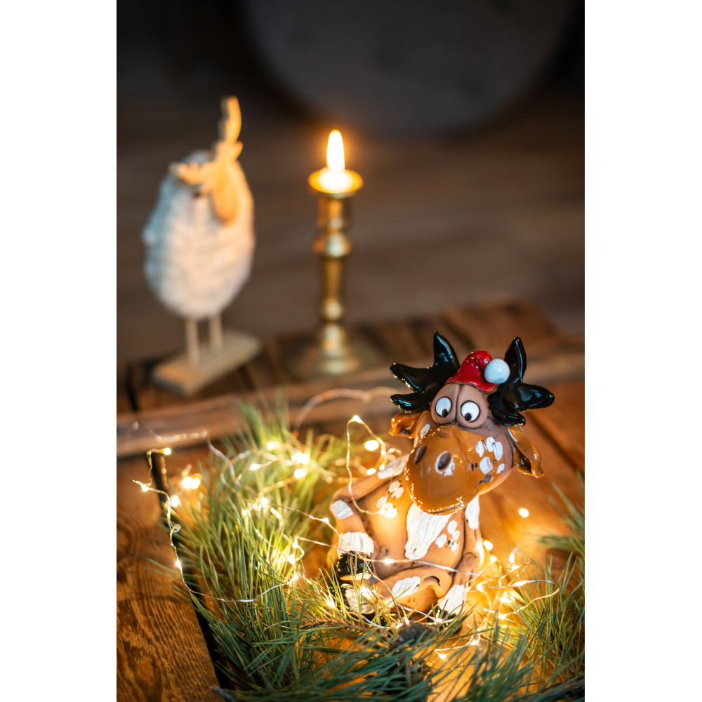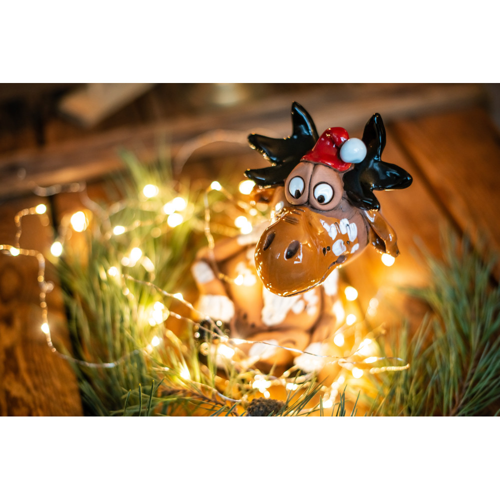 Keramikos briedis yra akcentas kiekvienam Kalėdų apdailai. Jis užtikrina gerą nuotaiką ir idealiai tinka kaip decofigur ant palangės, ant stalo ar baldų.