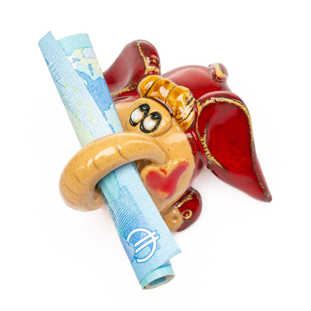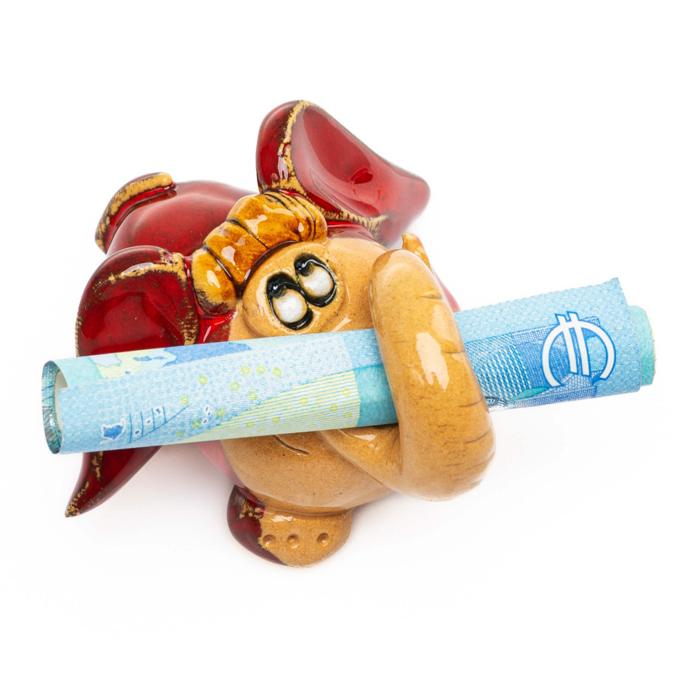 Iš keramikų pagamintas dramblio kamienas yra suformuotas taip, kad įstatymas būtų suvyniotas į jį. Taigi šis skaičius idealiai tinka kaip juokingas papildymas pinigams. Tuo pačiu metu skaičius yra decofigur ant baldų gabalų arba palangės mažo aklumo.