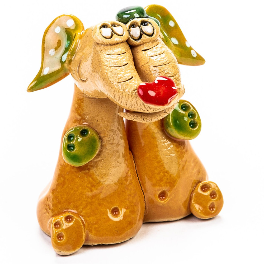 Keramika Minifigur - sėdi dramblys poros su širdimi ant korsetų - mišrios spalvos