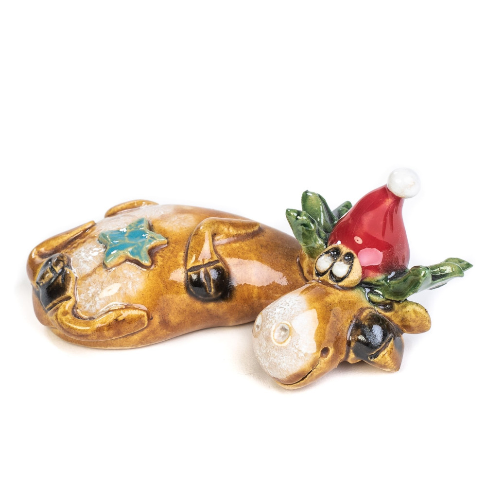 Moose yra sutelktas į detales ir yra ranka skirtingomis spalvomis. Mes nesuteikiame mūsų keraminių minifigų į įvairią spalvą, žinoma, kad Kalėdų skrybėlę, žinoma, visada raudona.