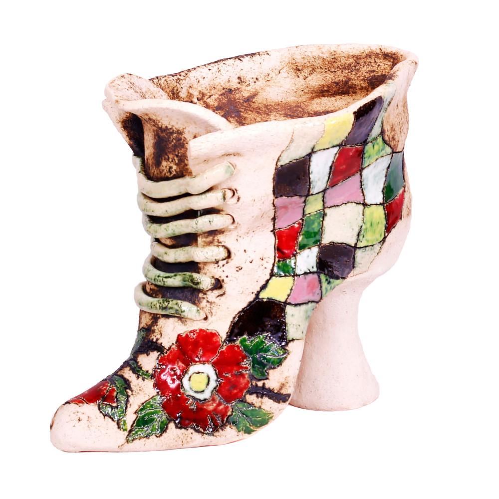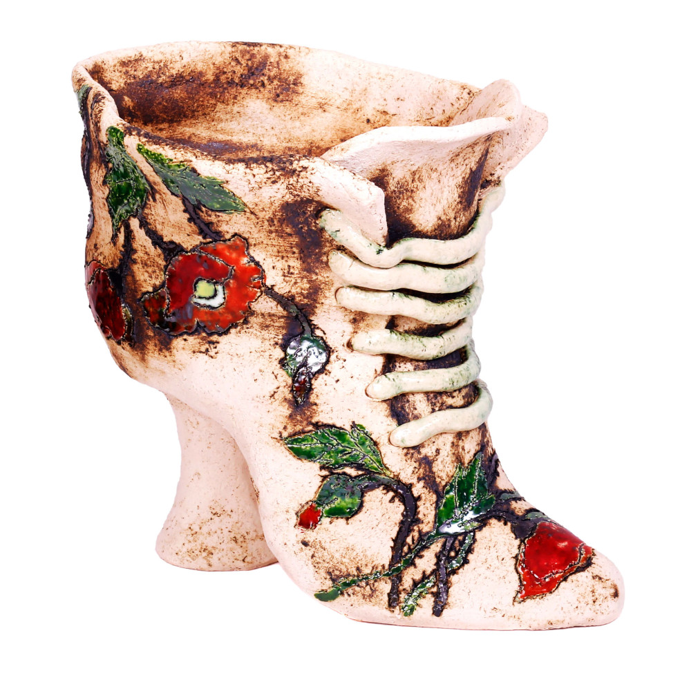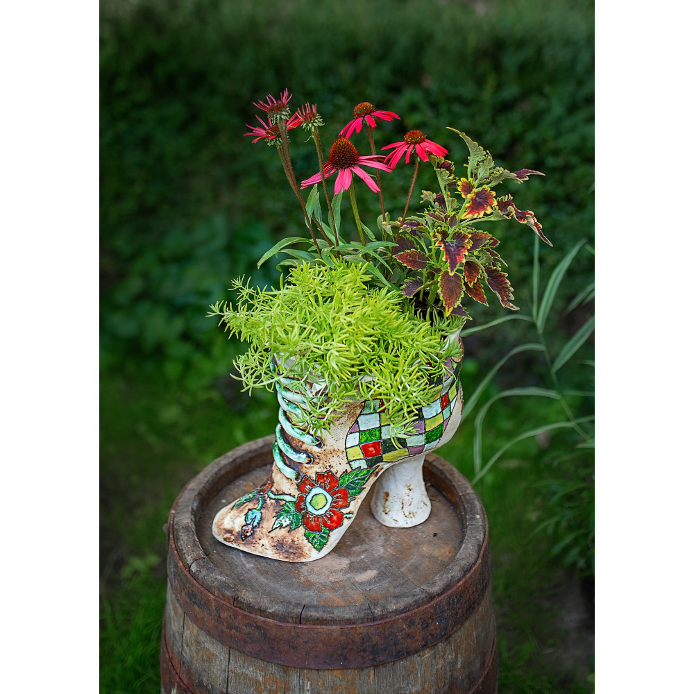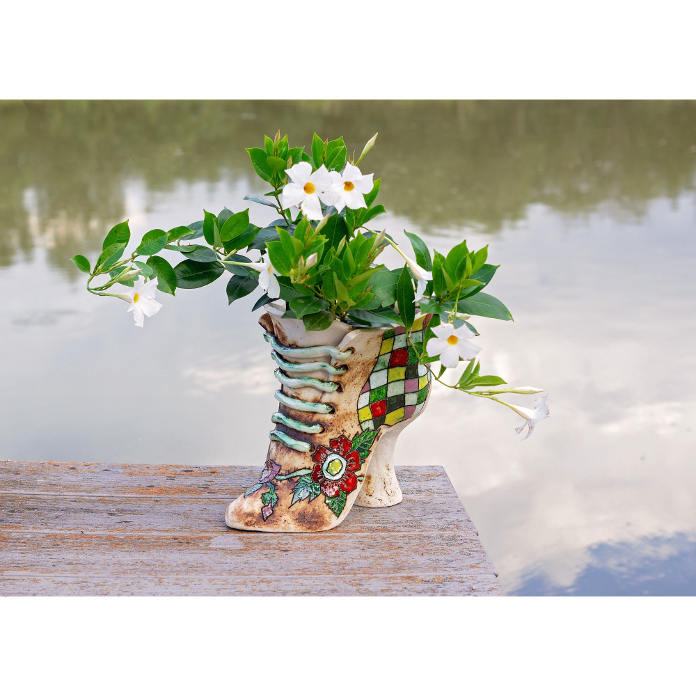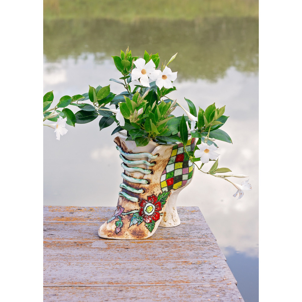Visi papuošti savo namus, sodą ir terasą su gėlėmis; Bet kaip apie savo namus ir sodą ne tik dekoruoti gėlėmis, bet ir su gėliųpotais? Šis keraminis gėlių vazonas suteikia jūsų namams ir sodo unikalumą, spalvą ir gerą nuotaiką. Puikiai taip pat yra dovana sodui, dekost draugams ir batų mėgėjams.