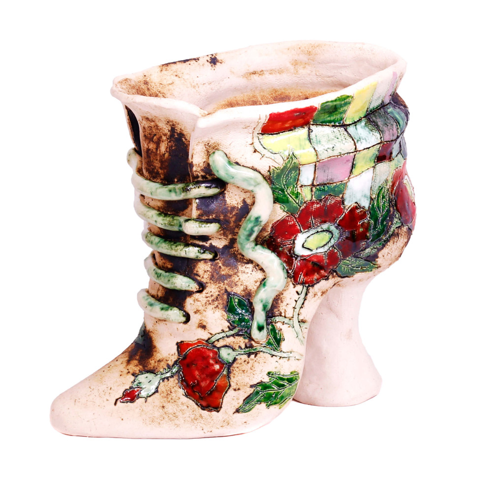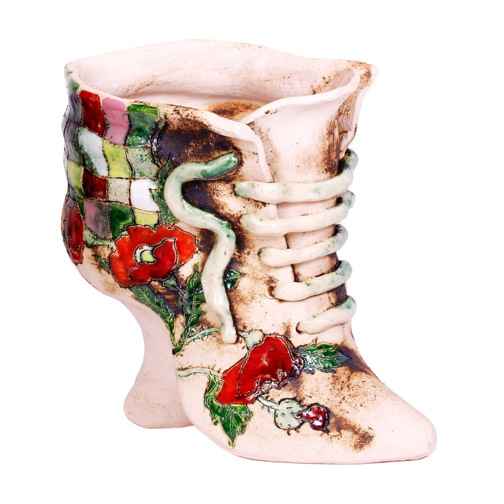 Visi papuošti savo namus, sodą ir terasą su gėlėmis; Bet kaip apie savo namus ir sodą ne tik dekoruoti gėlėmis, bet ir su gėliųpotais? Šis keraminis gėlių vazonas suteikia jūsų namams ir sodo unikalumą, spalvą ir gerą nuotaiką. Puikiai taip pat yra dovana sodui, dekost draugams ir batų mėgėjams.