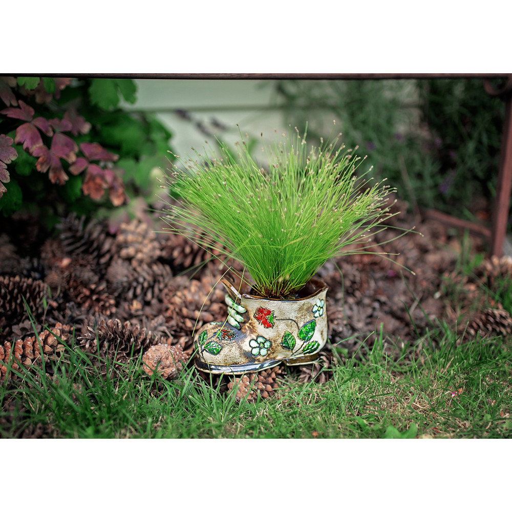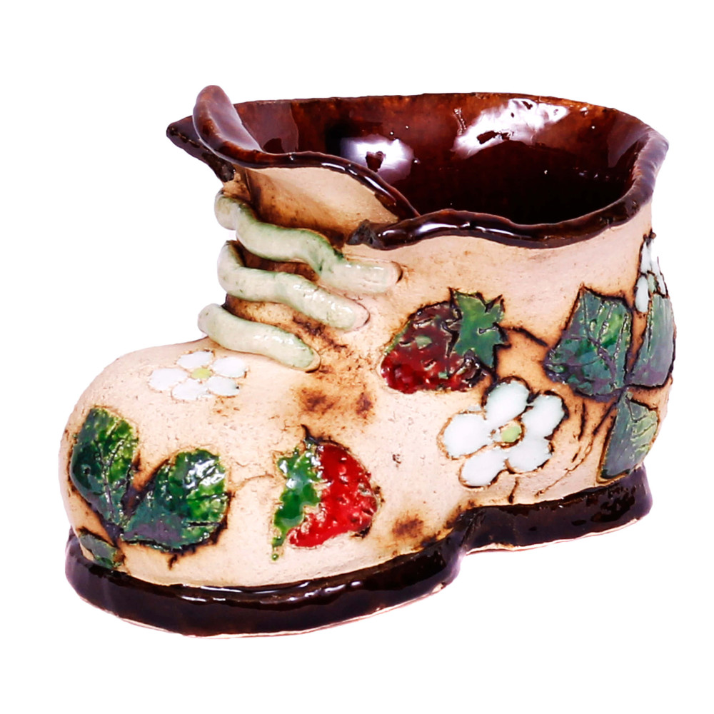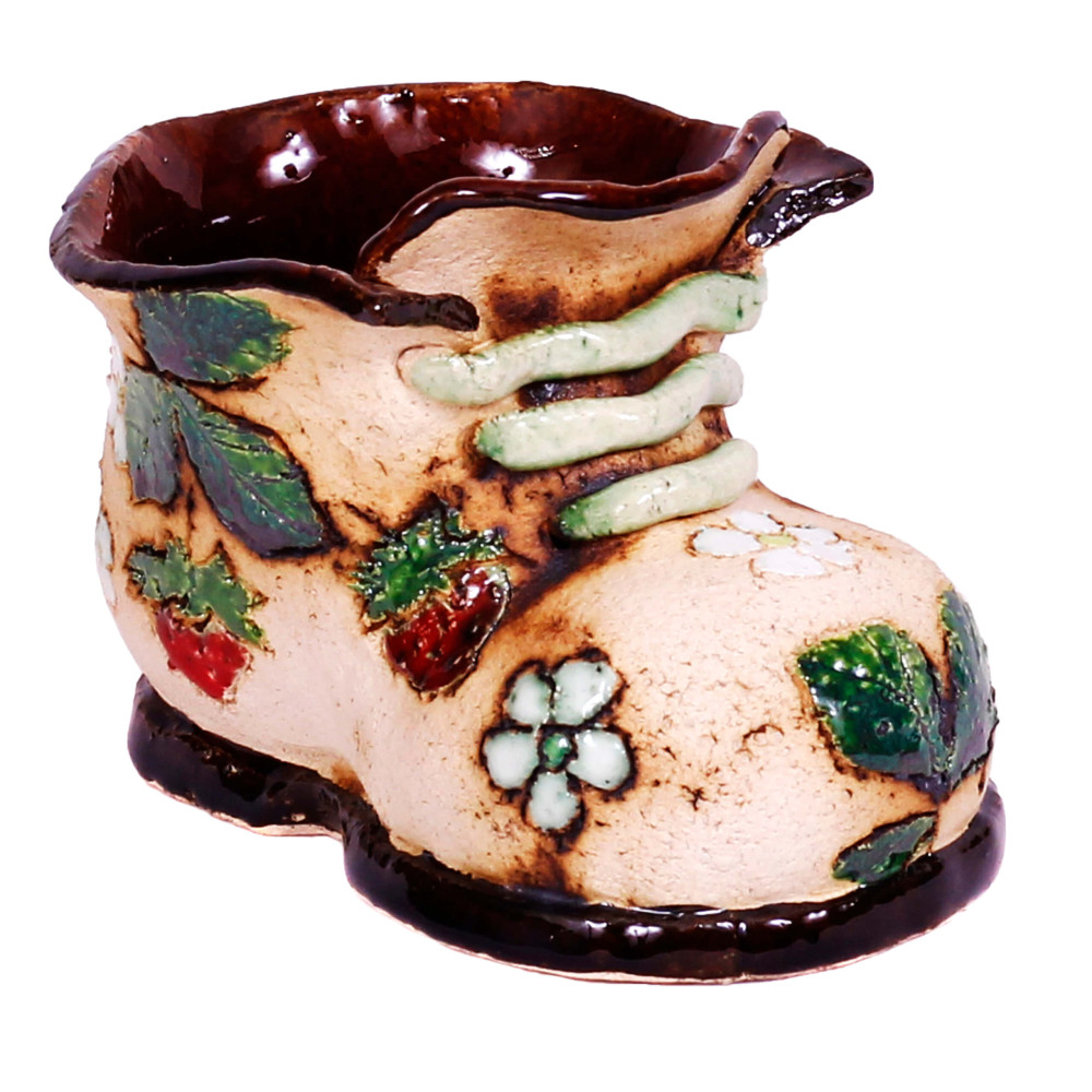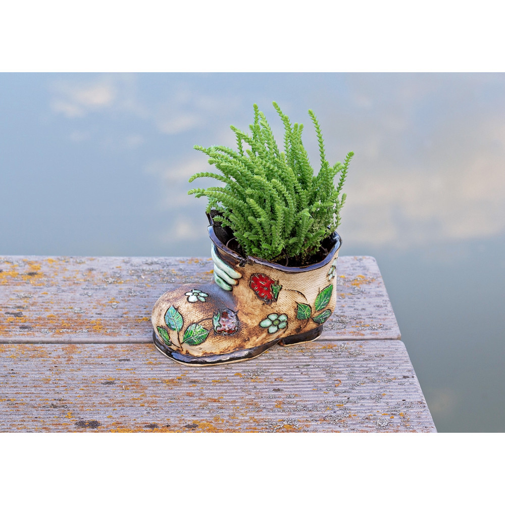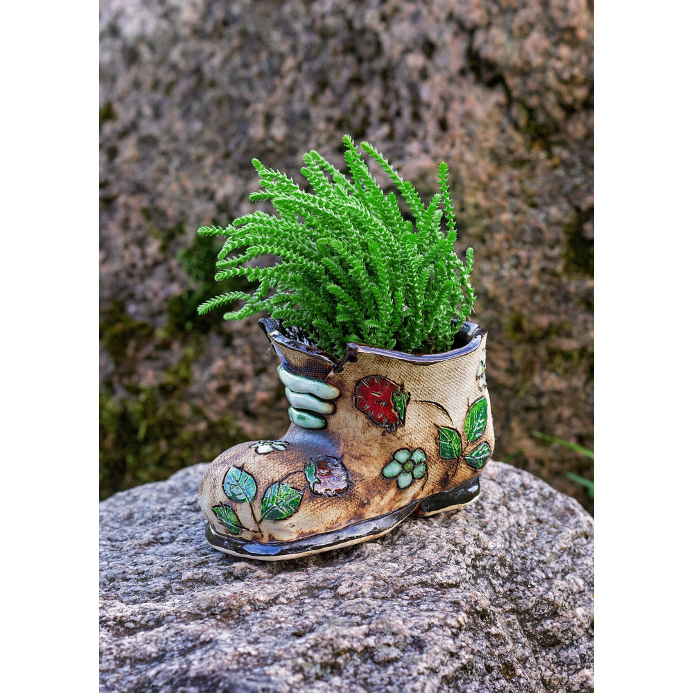 Visi papuošti savo namus, sodą ir terasą su gėlėmis; Bet kaip apie savo namus ir sodą ne tik dekoruoti gėlėmis, bet ir su gėliųpotais? Šis keraminis gėlių vazonas suteikia jūsų namams ir sodo unikalumą, spalvą ir gerą nuotaiką. Puikiai taip pat yra dovana sodui, dekost draugams ir batų mėgėjams.