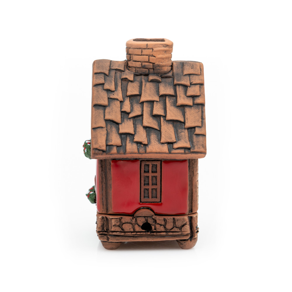 Viršutinė keramikos namų dalis yra nuimama ir yra tiesiog užfiksuota apatinėje dalyje. Čia galite įdėti smilkalų jungą ar dūmų kremą, kad paguodantis kvapas galėtų platinti kambaryje.