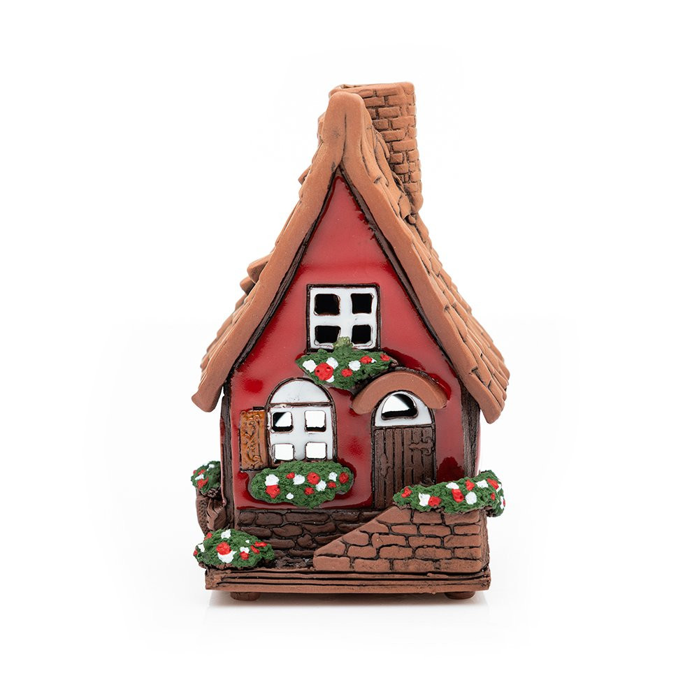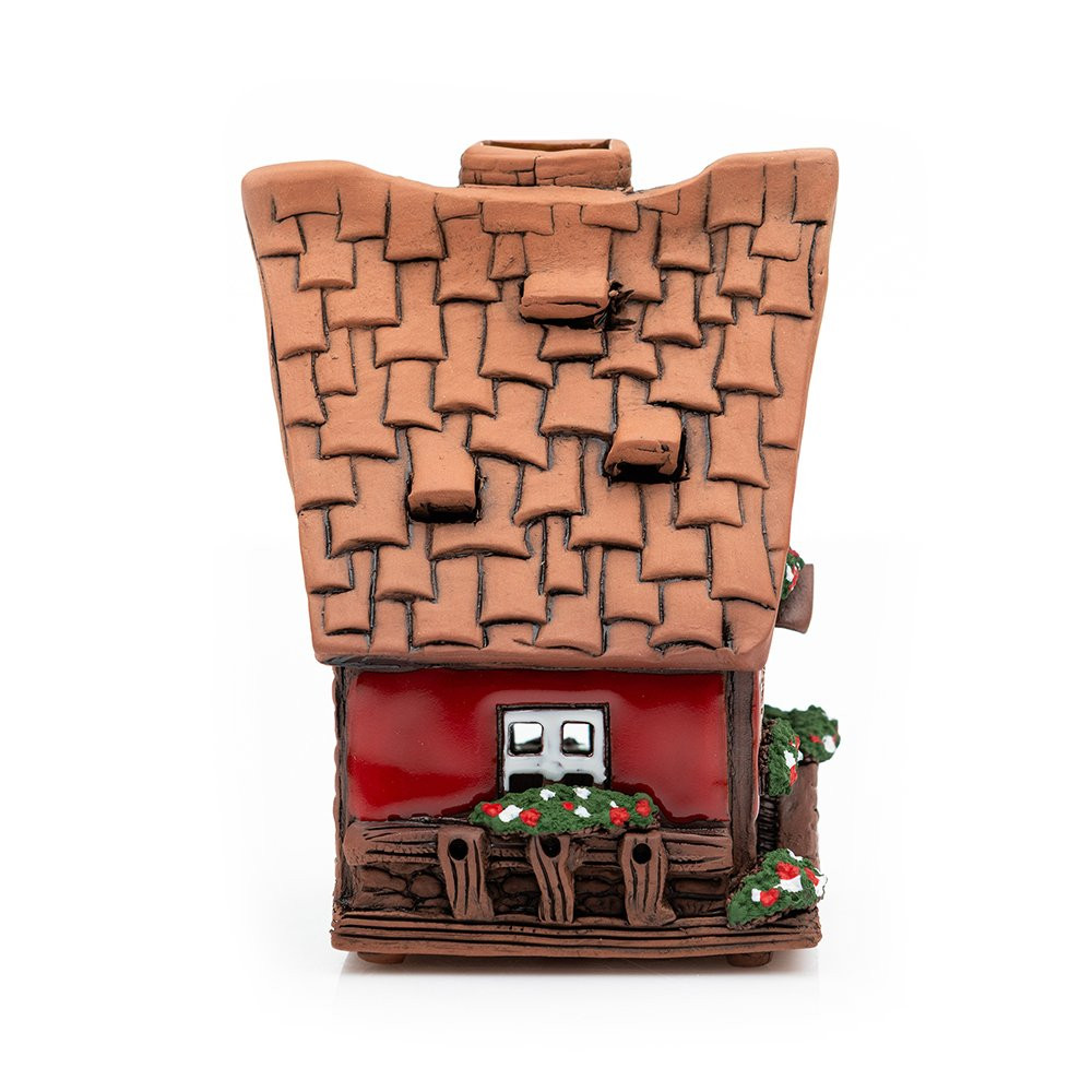 Das Keramikhaus ist nicht nur als Miniaturhaus zur Deko geeignet, sondern kann auch mit Räucherkegeln und Duftöl befüllt werden. Im Inneren findet ein Teelicht oder Räucherkegel Platz und der Schornstein kann mit ätherischem Öl befüllt werden. So ist es Duftlampe, Teelichthalter und Räuchermännchen bzw. Räucherhäuschen in einem.