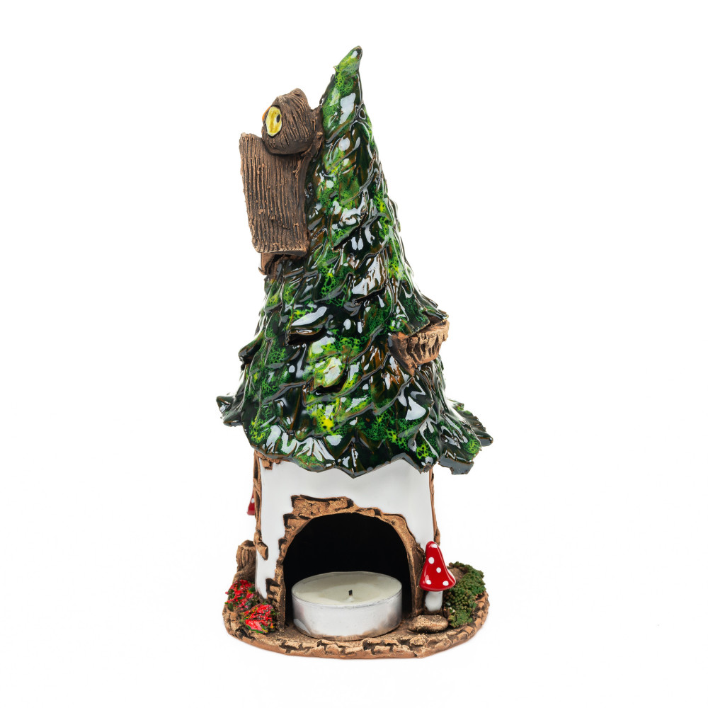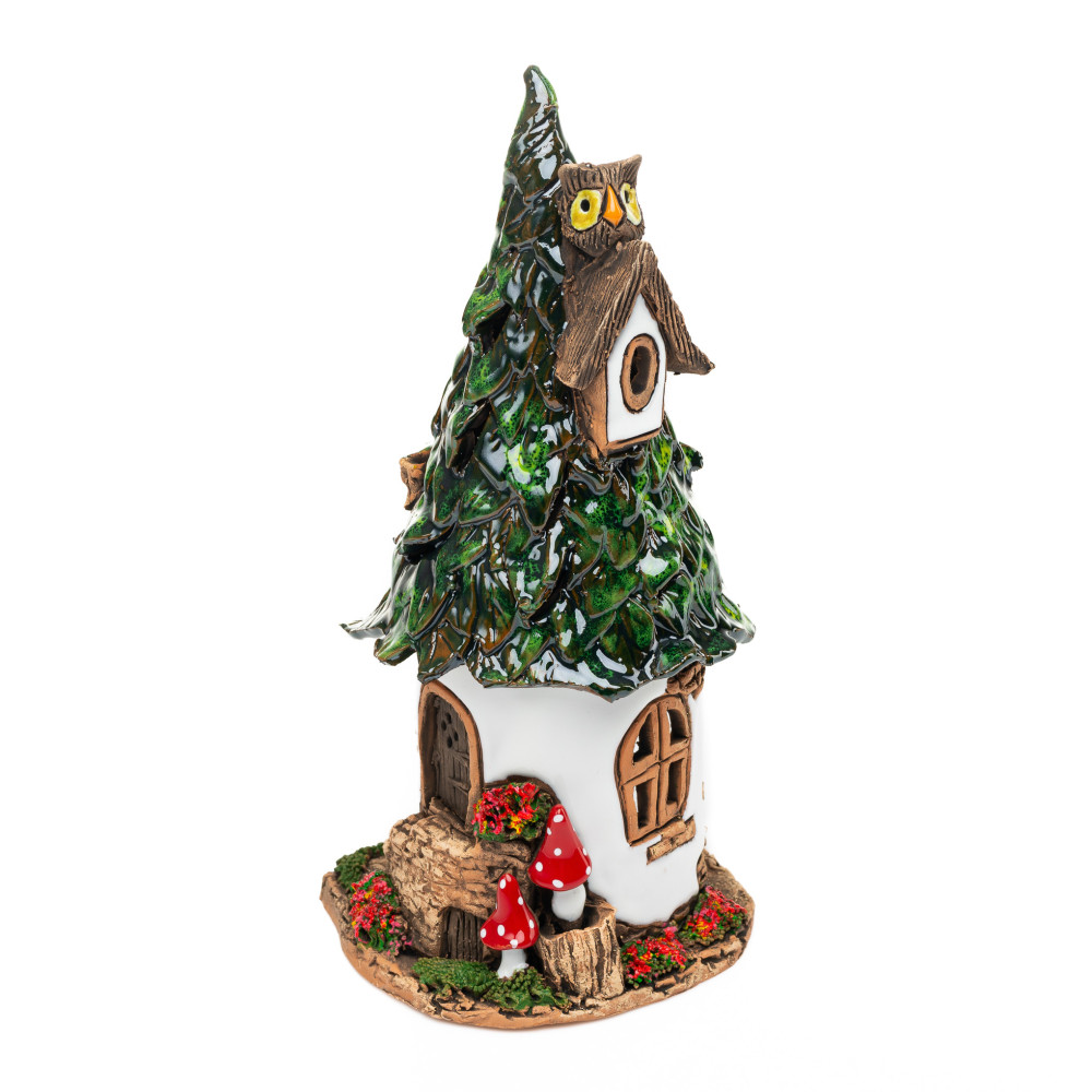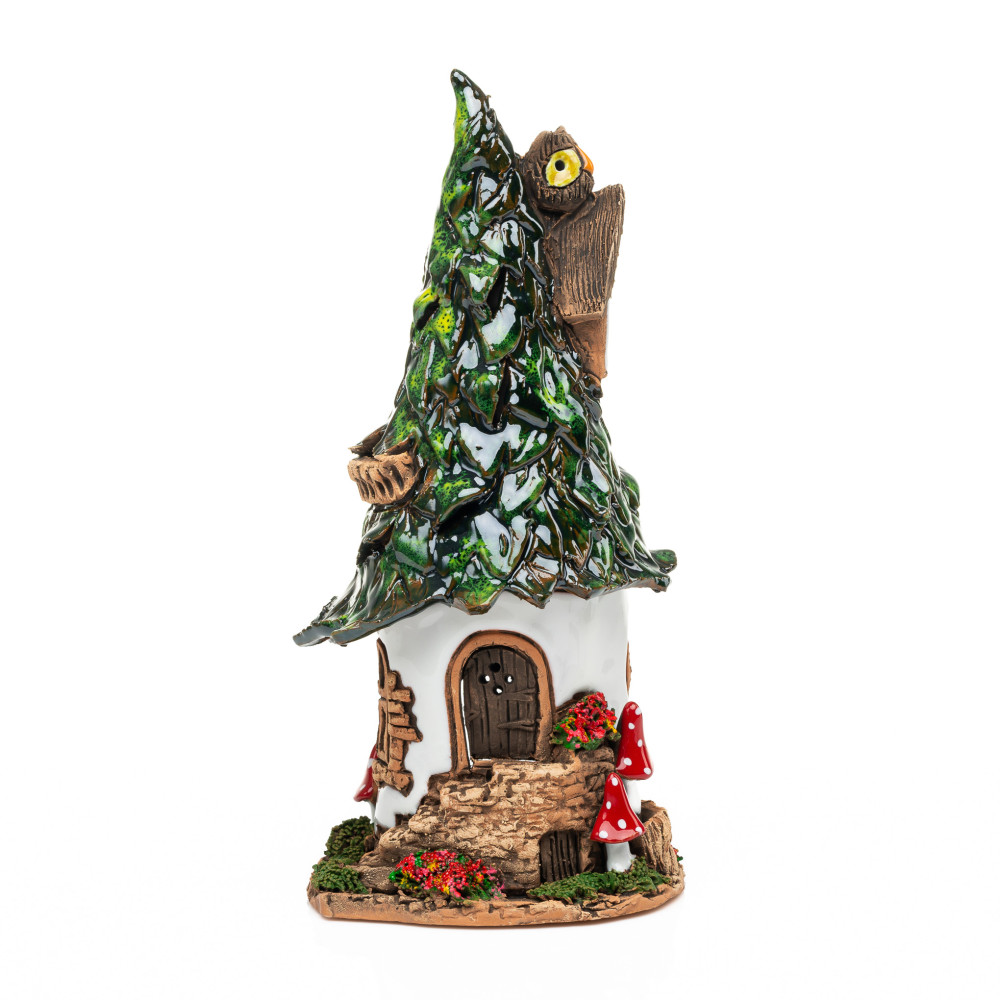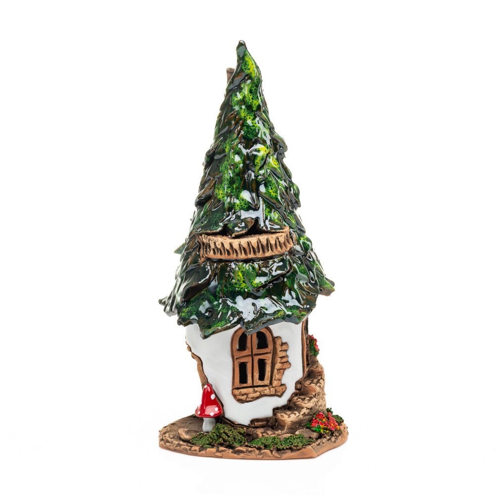 Labai suprojektuotas keraminis namas yra rankomis ir rankiniu būdu. Jis yra naudojamas kaip vvietaus ar tealivietis namas, nes viduje tealght arba kvapiosios žvakės rasti erdvę. Nesvarbu, ar esate kūrybinė dovana mylimam žmogui, kaip Kalėdų denio arba kaip ir akį, savo langų denyje arba ant valgomojo stalo; Su apvalia pasakų name su lapų stogu, jūs negalite suklysti, nes jis suteiks entuziazmą visur.
