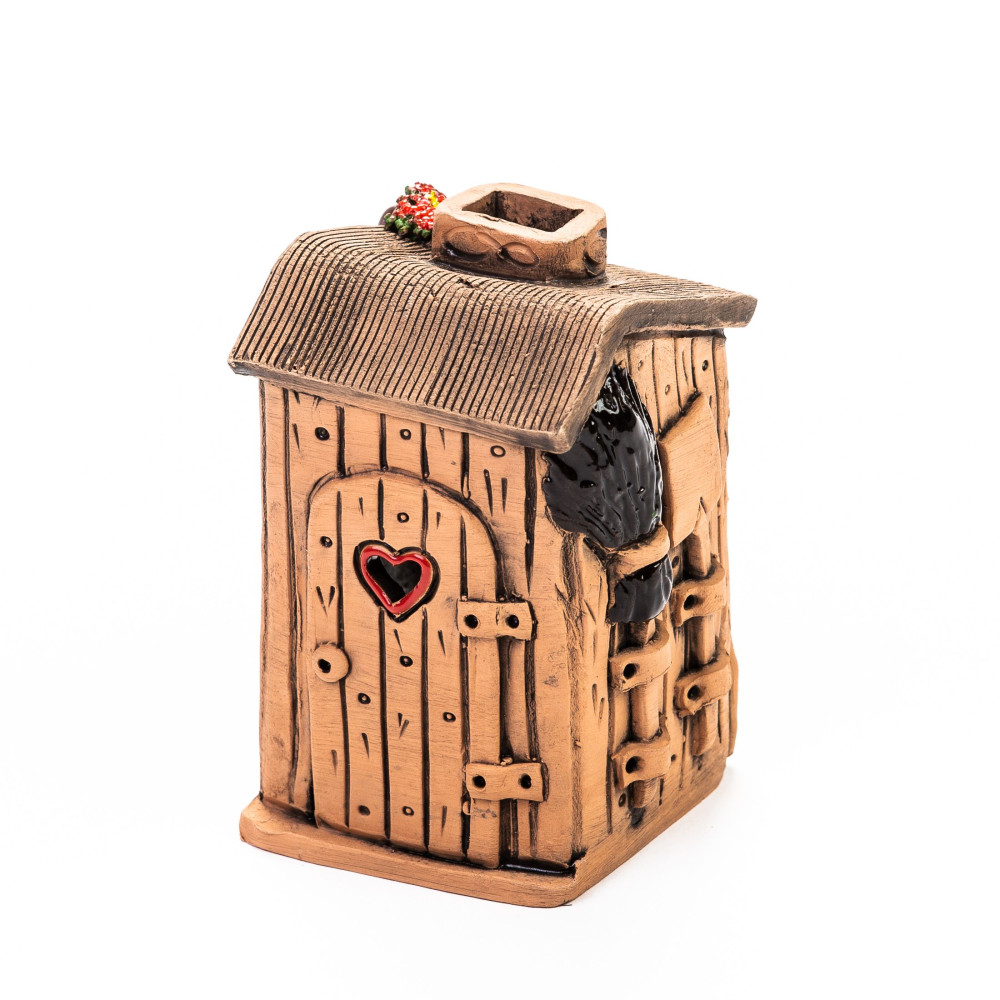 Tualeto namas, pagamintas iš keramikos, yra pagamintas ir dažytas. Viduje, Tealight arba Dūmų kieme gali būti apgyvendinami, todėl jis plinta maloniu kvapu jūsų namuose. Kiekvienas keraminis namas yra tikras unikalus kūrinys.