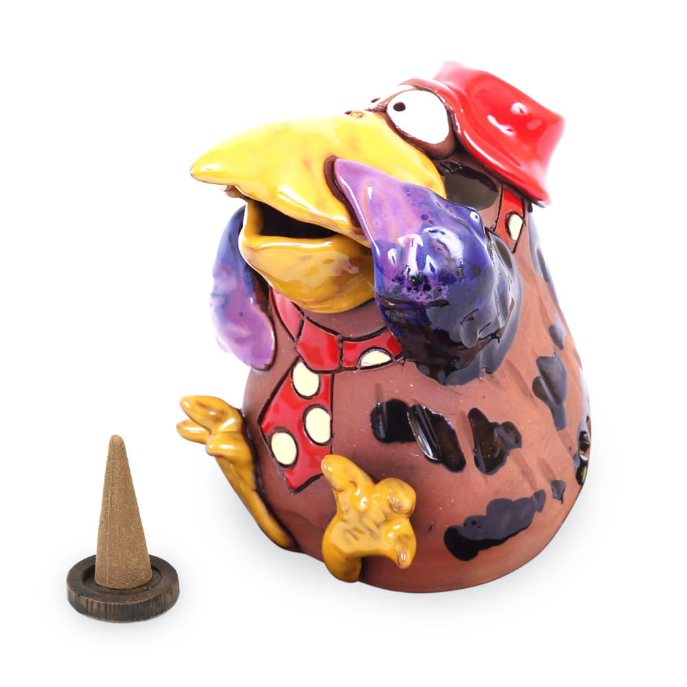 Šis rūkytas figūra yra ne tik juokinga ir graži, bet ir patogi ir praktiška: mažos plokštės valymas yra gana paprastas, pelenai nepatenka šalia, bet ant plokštės. Ji tikrai yra vertinama kaip jos namų apdaila ir jos svečiai. Puikiai kaip dovana, taip pat ir sodo ir dekoracijų draugams, taip pat varnoms ir varnas mėgėjams.