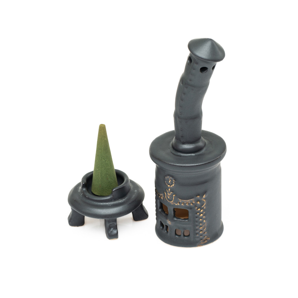 Mažos apvalios rūkytos krosnies viduje yra keramikos dubuo, kuris leidžia jums įdėti dūmų laivų statyklus ar rūkalius. Tada dūmai atsiranda nuo orkaitės vamzdžio ir skleisti malonų kvapą per kambarį. Taip pat kaip juokinga Kalėdų apdaila arba kaip ypatinga dovana, keraminis minifigūra yra puiki.