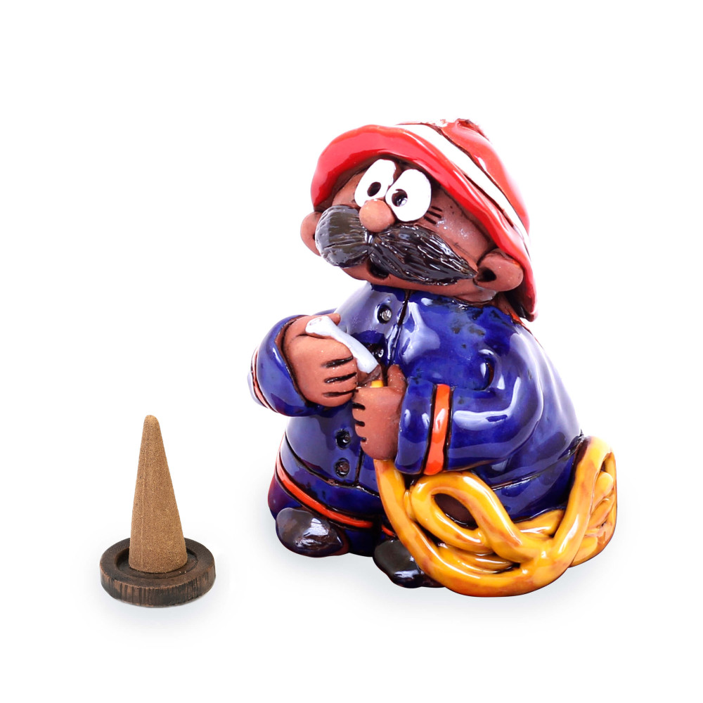Šis rūkytas figūra yra ne tik juokinga ir graži, bet ir patogi ir praktiška: mažos plokštės valymas yra gana paprastas, pelenai nepatenka šalia, bet ant plokštės. Ji tikrai yra vertinama kaip jos namų apdaila ir jos svečiai. Puikiai kaip dovana, taip pat sodas ir dekoracijos draugai gaisrininkams.