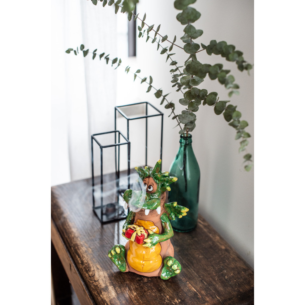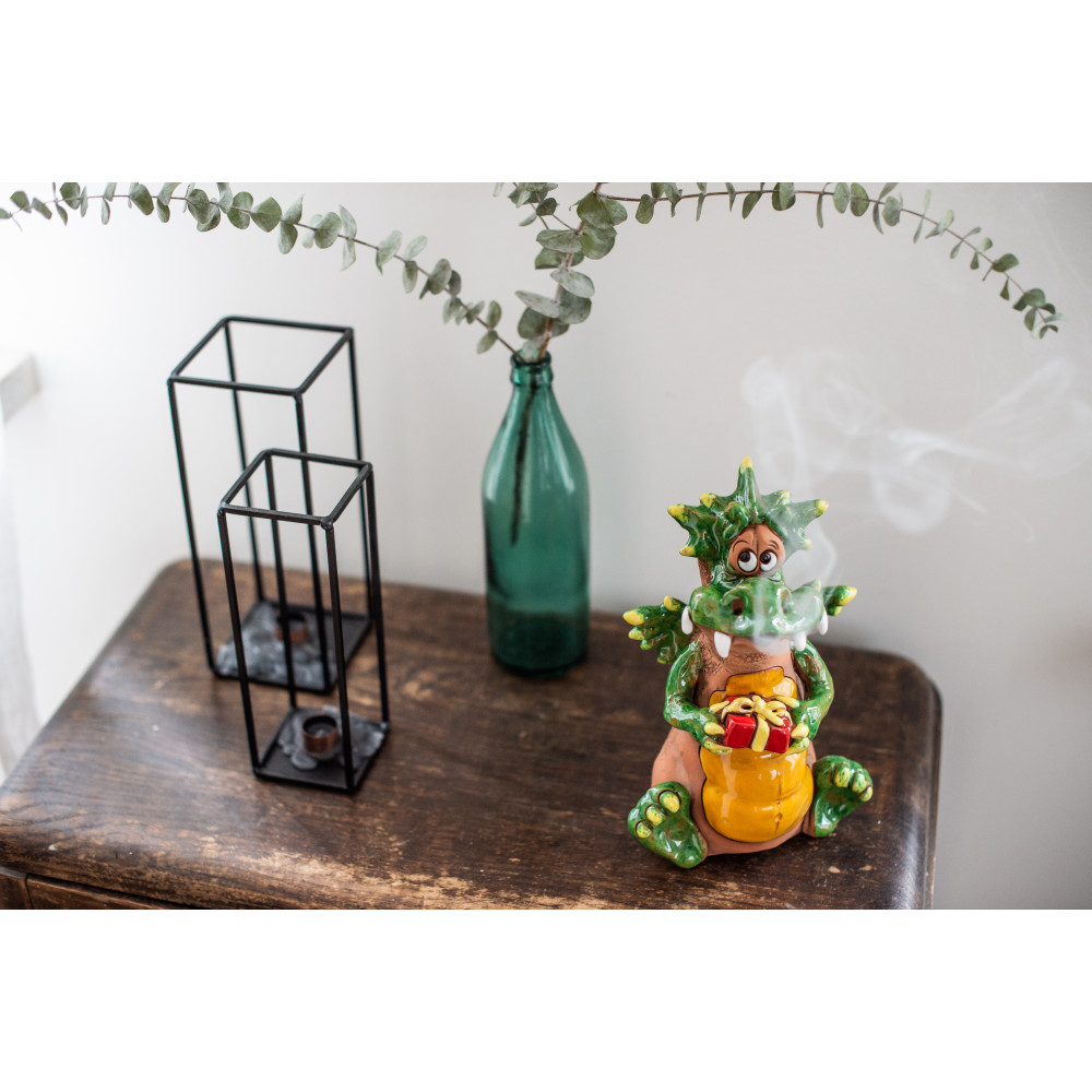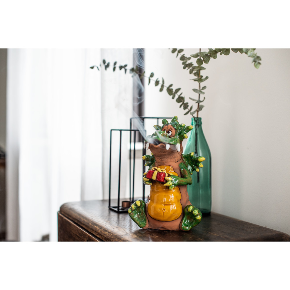 Augus atidarymo apačioje, didelis keraminis drakonas gali būti aprūpintas rūkytuvais ir dūmų kremais ir taip naudojamas kaip rūkalius arba smilkalų drakonas. Taip pat kaip apdaila arba kaip kūrybinė dovana kiekvienai progai, tai yra puikus.