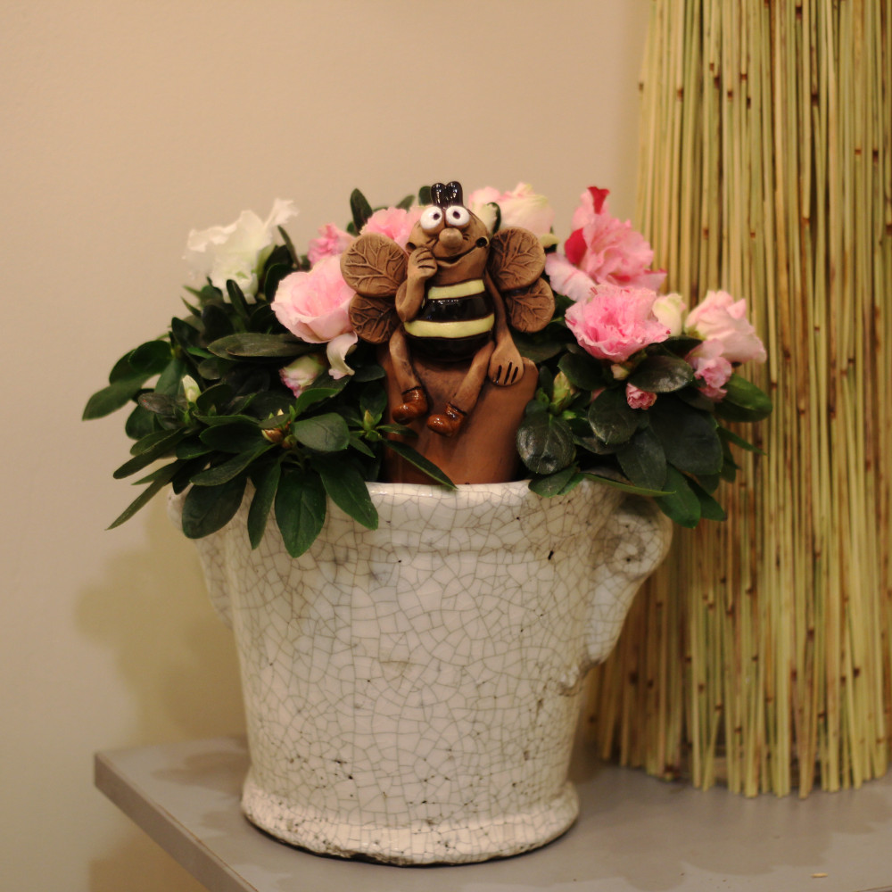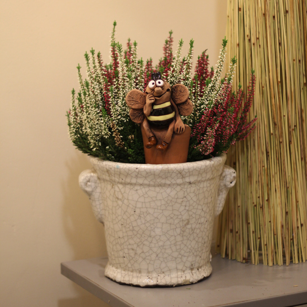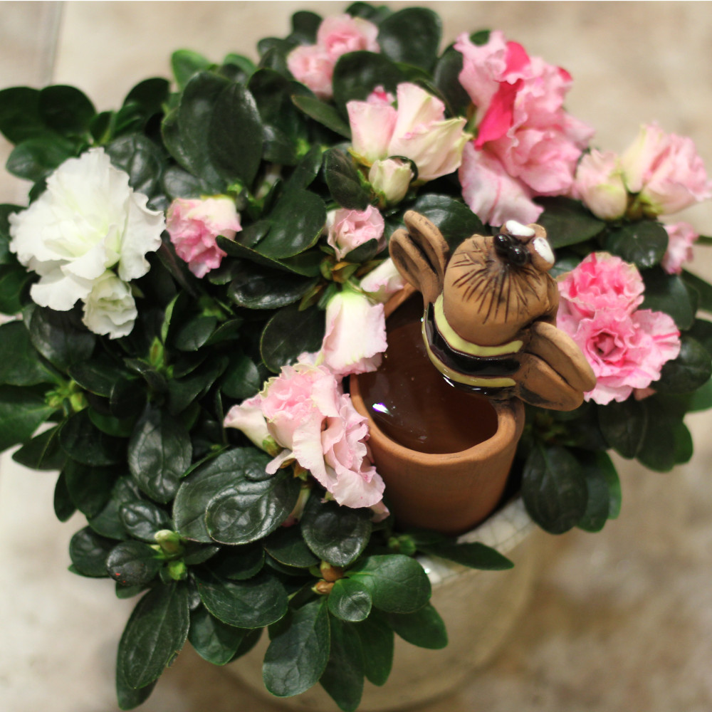 Įdėkite šį keraminį drėkintuvą į gėlyną, užpildykite jį vandeniu ir jam nereikės nerimauti dėl gėlių keturias dienas. Vidinė drėkintuvo pusė nėra glazūruotas, todėl vanduo lėtai stumia mikroporinį molį ir drėkina gamyklą. Be to, tai yra išskirtinis gėlių vazonų, langų lentų ir namų apdaila, kuri negali būti abejingi. Puikiai kaip dovana, taip pat ir sodo ir dekoracijų draugams bei bičių mėgėjams.