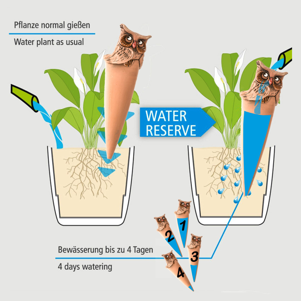Įdėkite šį keraminį drėkintuvą į gėlyną, užpildykite jį vandeniu ir jam nereikės nerimauti dėl gėlių keturias dienas. Vidinė drėkintuvo pusė nėra glazūruotas, todėl vanduo lėtai stumia mikroporinį molį ir drėkina gamyklą. Be to, tai yra išskirtinis gėlių vazonų, langų lentų ir namų apdaila, kuri negali būti abejingi. Puikiai tinka taip pat tinka kaip dovana sodui, deco ir katės draugams.