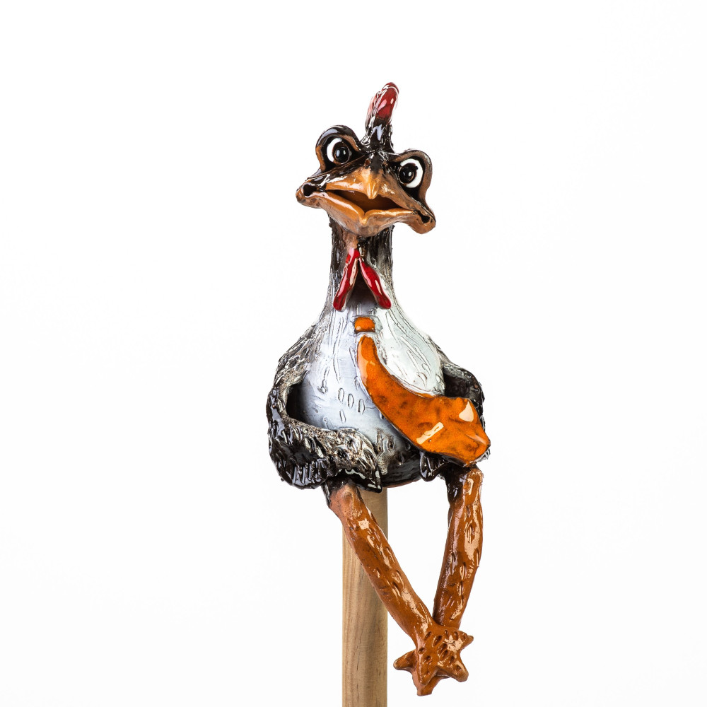 Apatinėje apačioje yra atidarymas, kad šis skaičius būtų naudojamas su mediniais ar metaliniais strypais, puikiai kaip sodo kištuką. Bet taip pat kaip pjaustytuvo išmatos ar deco namuose daro Gaidys gerą figūrą!