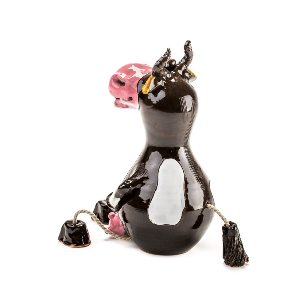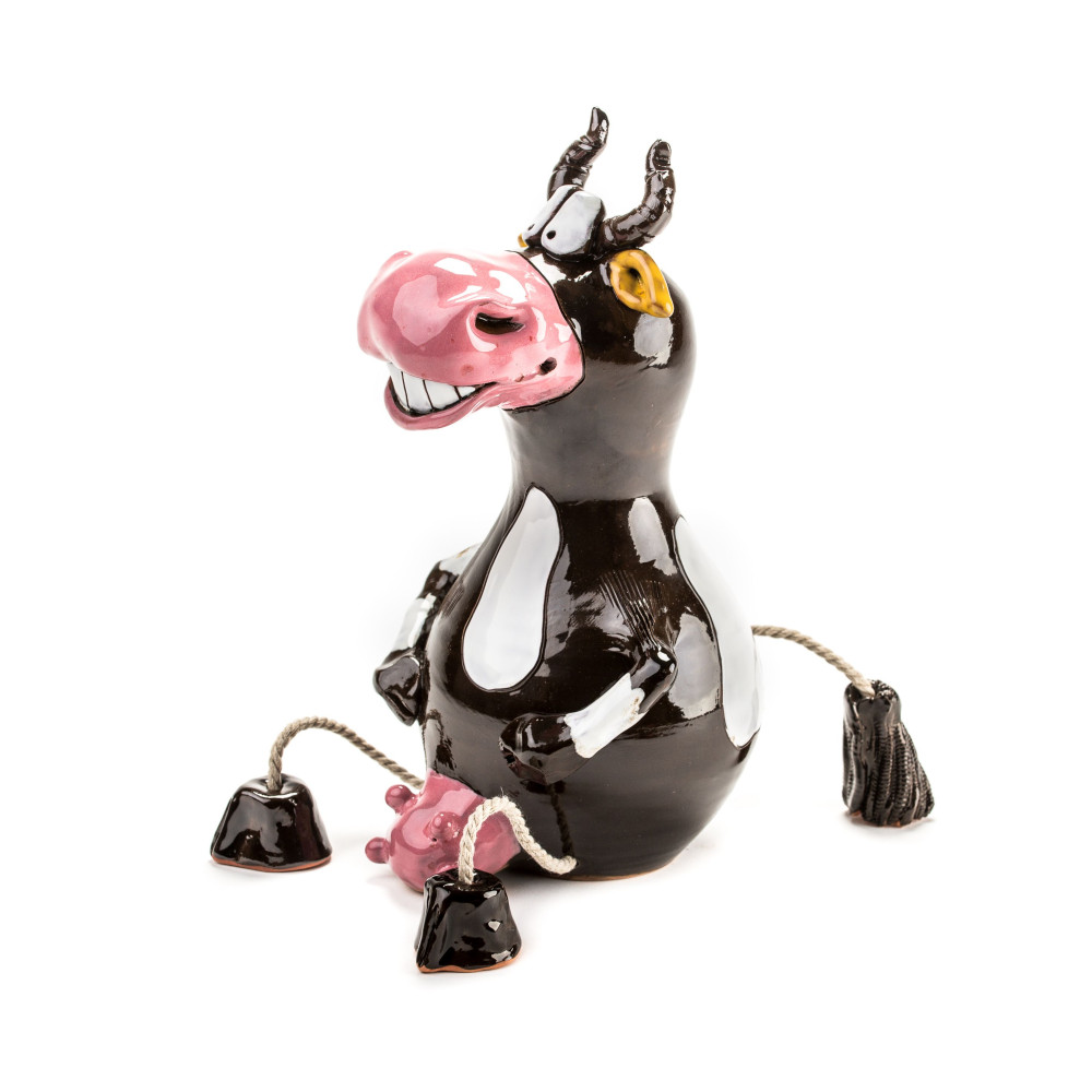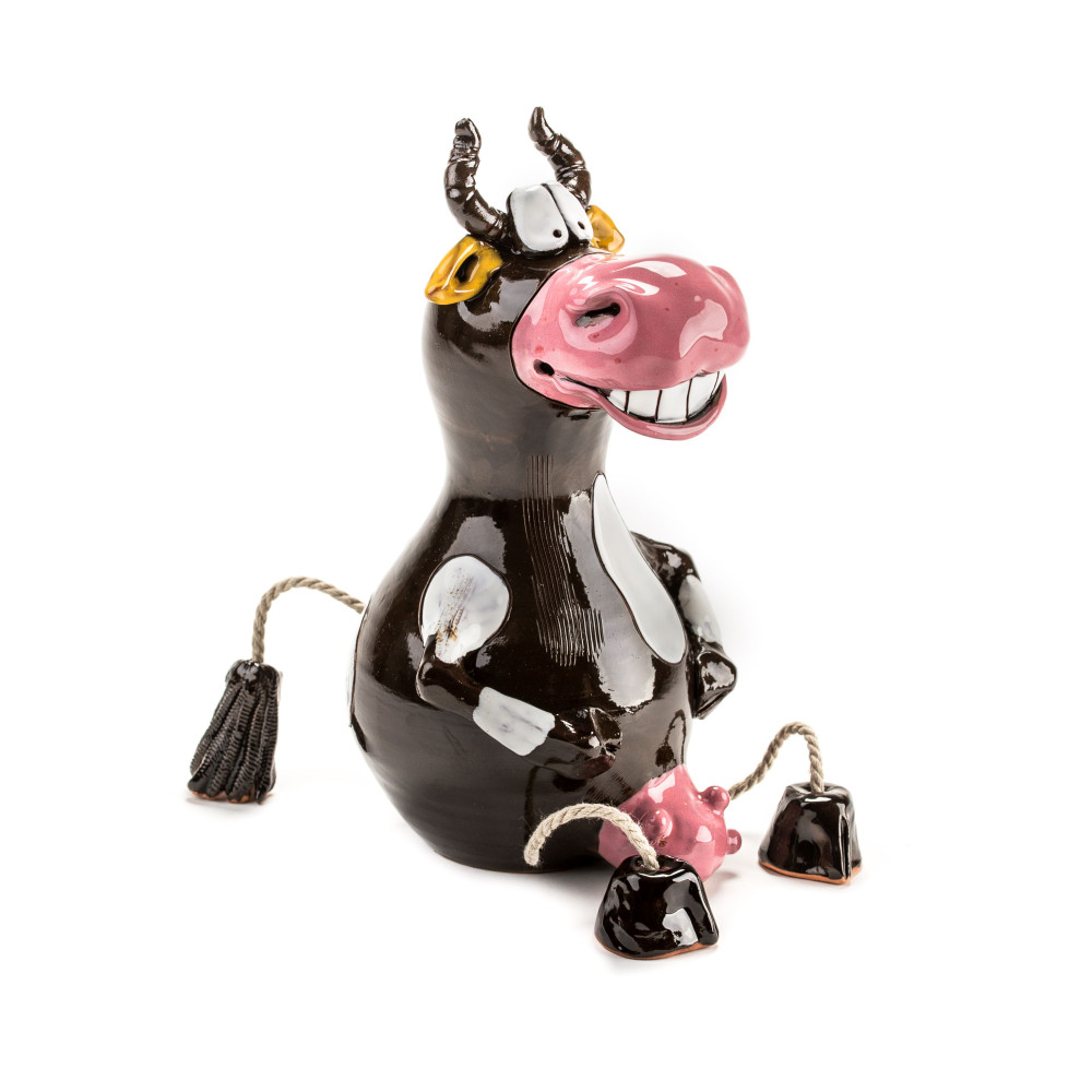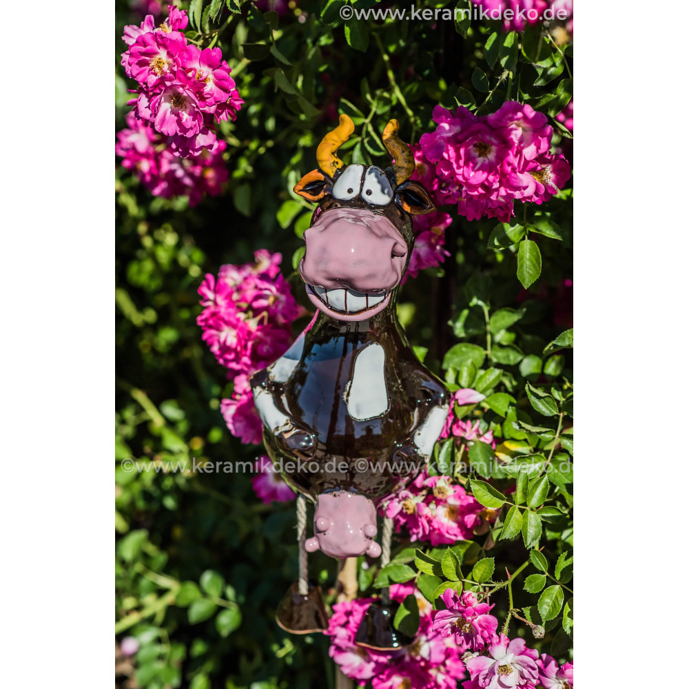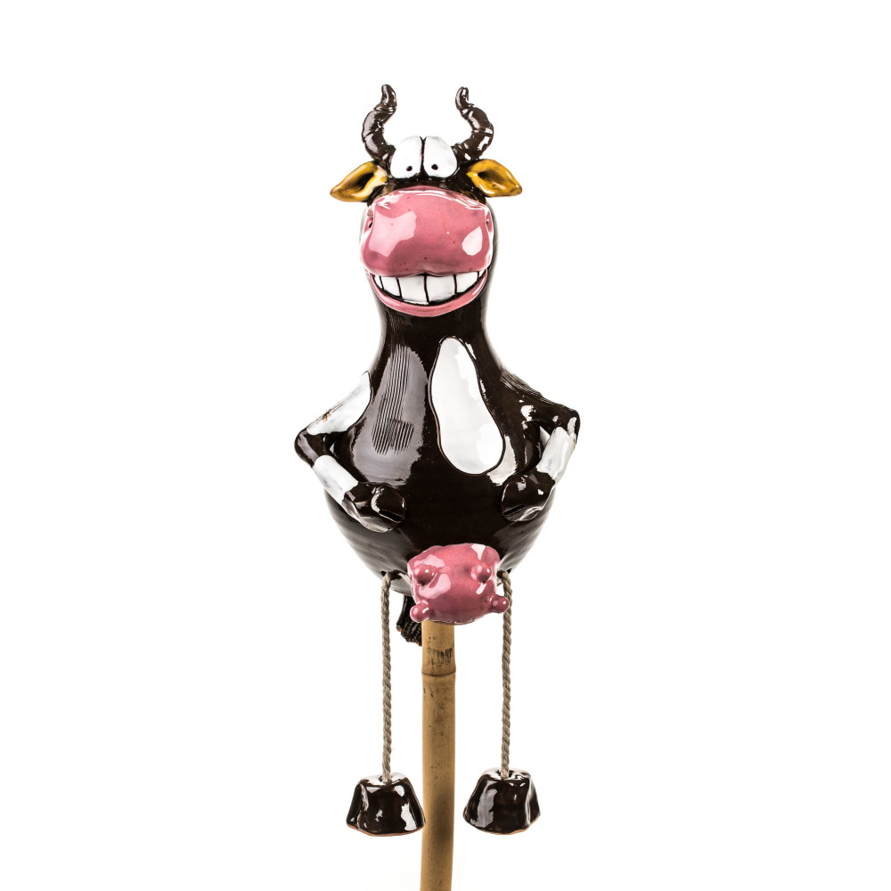 Juokinga keraminė karvė yra su dideliu dėmesiu detalėms rankų darbo vietoje. Jis gali būti pastatytas kabančiais kojomis, kurios yra pritvirtintos prie kūno, ne tik kaip krašto išmatos decofigur, bet ir kaip sodo kištukas labai gražiai.