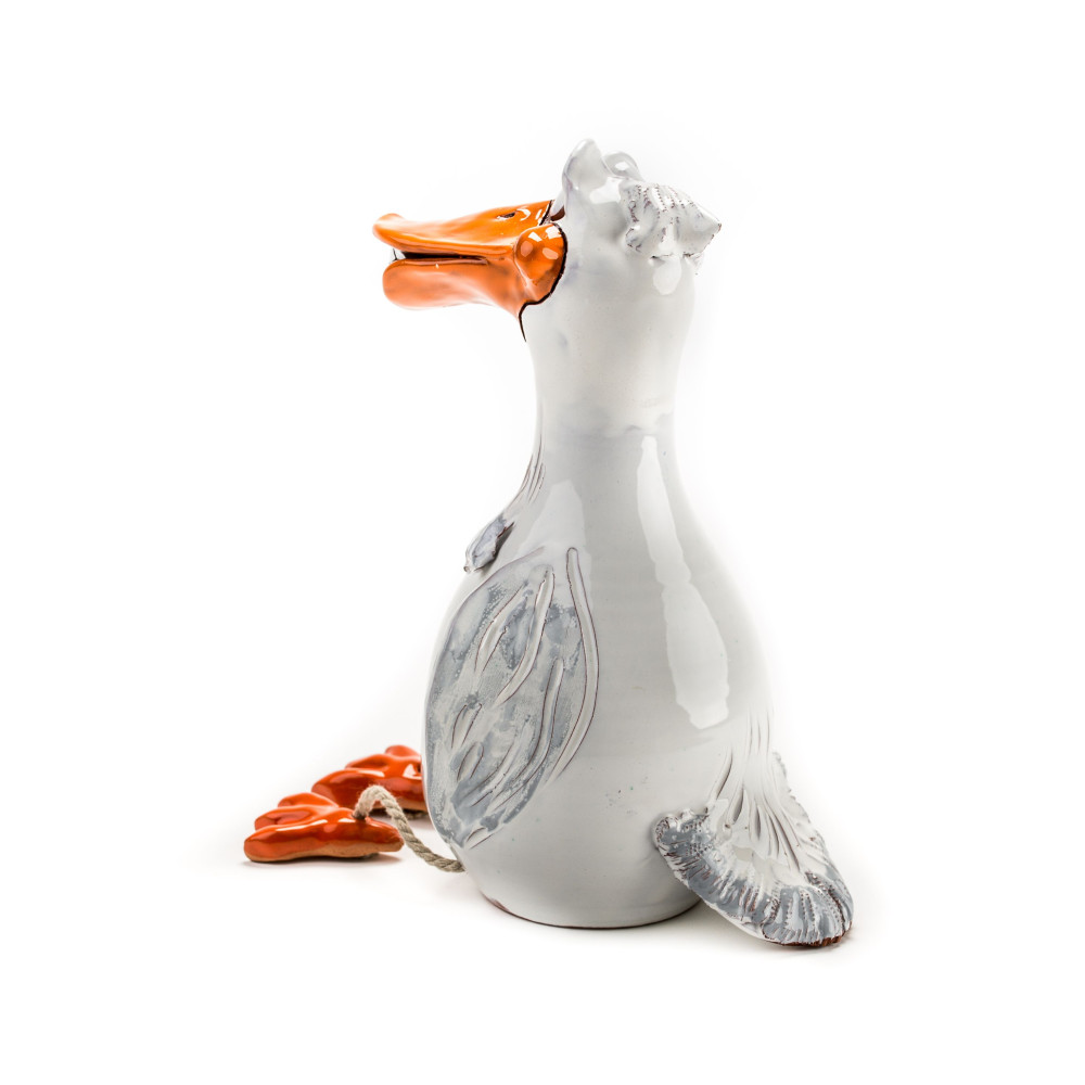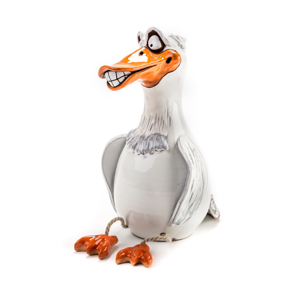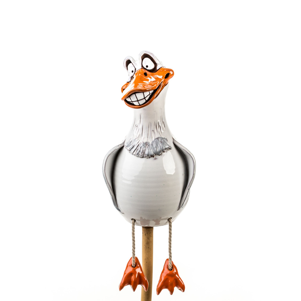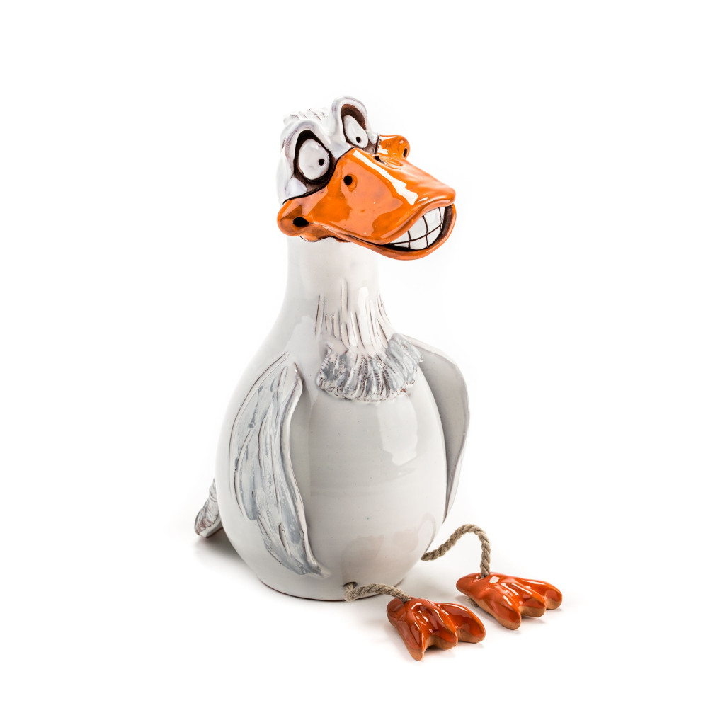 Gerai nusižengusi keraminė žąsė yra pagaminta mylėti rankų darbo meistriškumu ir rankomis. Dėl laisvai pakabinamų kojų keramikos figūra yra tikras akcentas kaip krašto kėdė ir kaip lango dekoras ir sodo kaištis. Su juokinga šypsena, deekofigur taip pat žais kaip dovana gyvūnų mėgėjams akcentu!