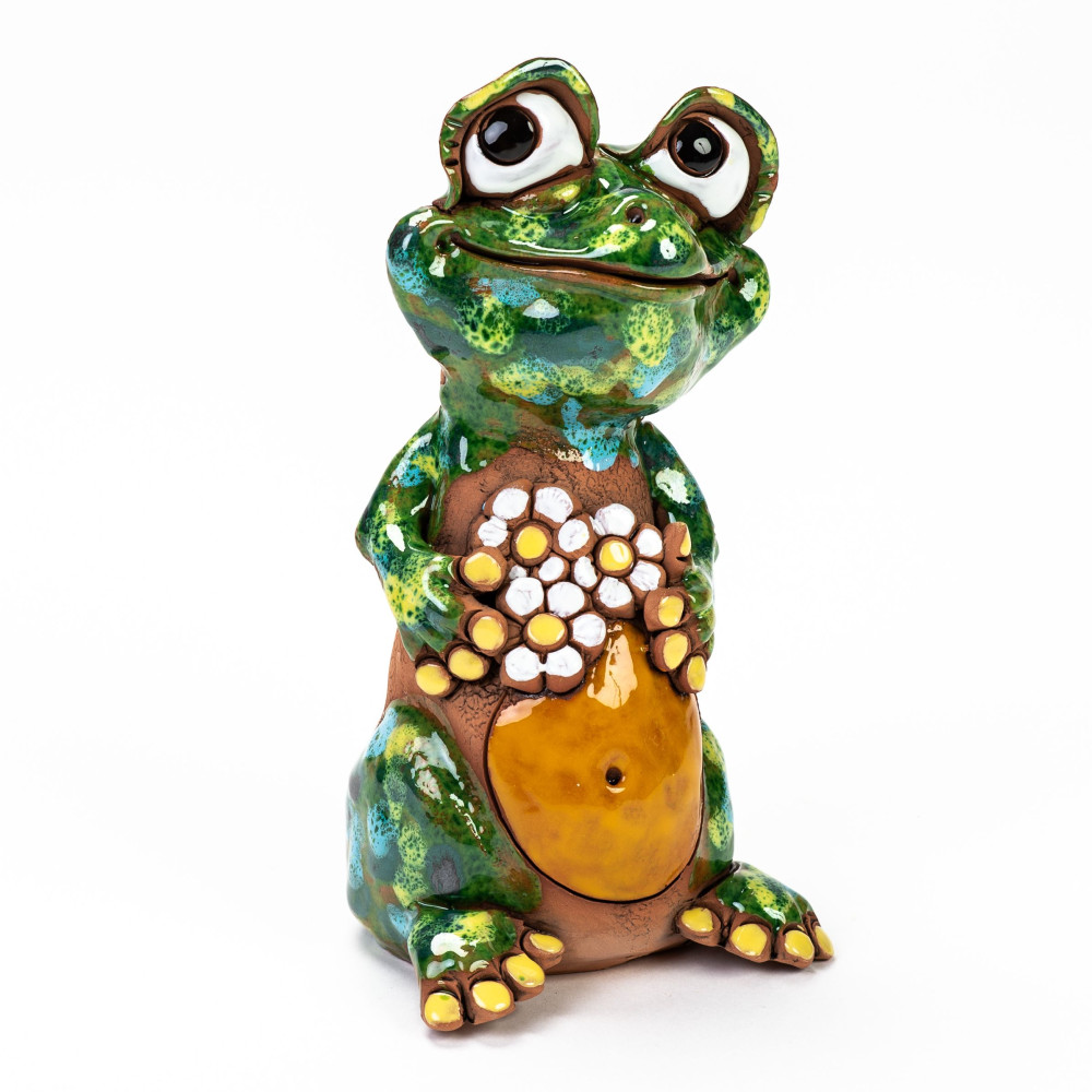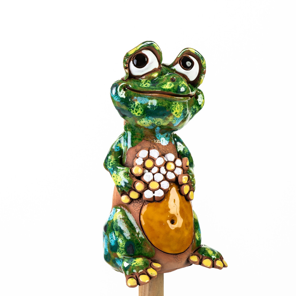 Suprojektuotas su dideliu dėmesiu detalės keramikos varlė yra aprūpinta dekoratyvinėmis gėlėmis, todėl jis yra puikus sodo ar balkono apdaila. Taip pat kaip kūrybinė dovana gamtos mėgėjams, jis yra idealiai tinka. Be to, jis gali būti naudojamas kaip deekofigur, taip pat sodo kištukas.