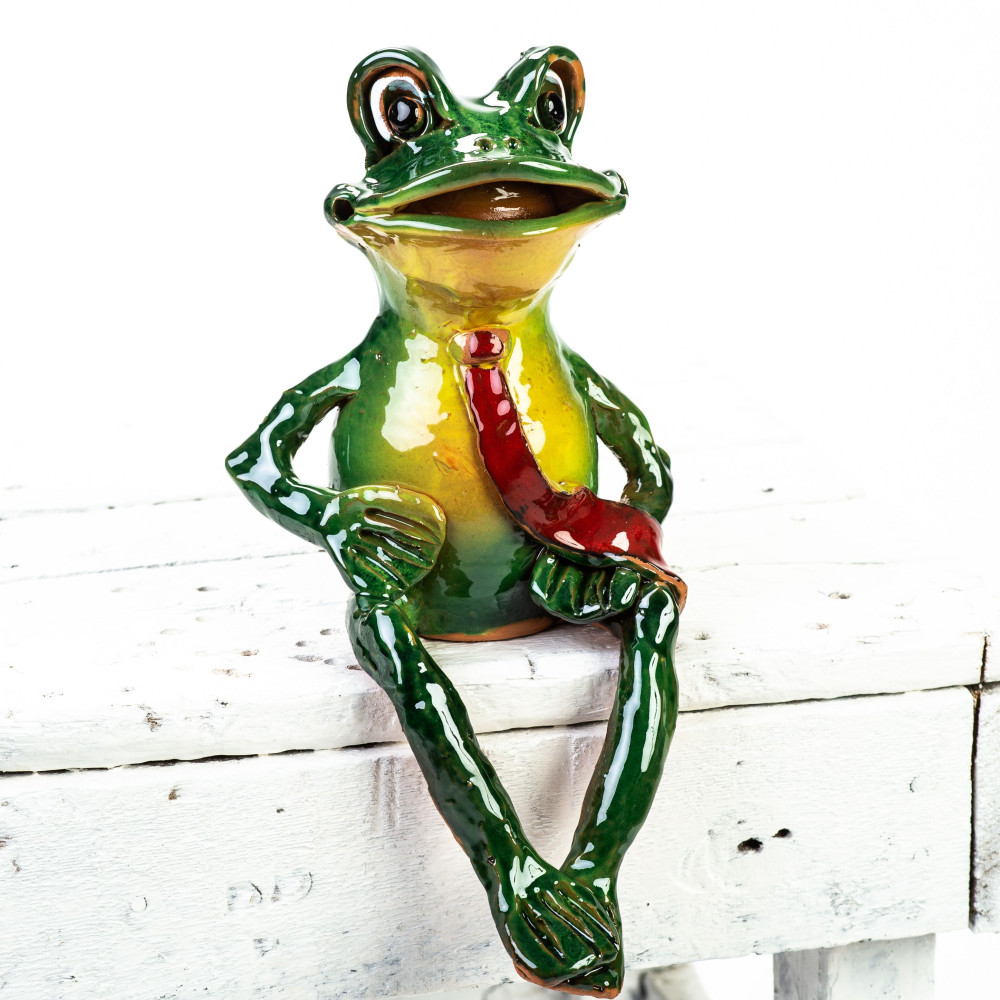 Der kKeramikfrosch wird in Handarbeit gefertigt und ist mit viel Liebe zum Detail gestaltet. Stolz posiert der Froschmann mit seiner Krawatte und sitzt entweder auf einer Fensterbank, einer Möbelkante oder einem Stein im Garten. Auch als Gartenstecker kann er sehr gut genutzt werden und natürlich ist er auch eine kreative Geschenkidee für alle Naturliebhaber.