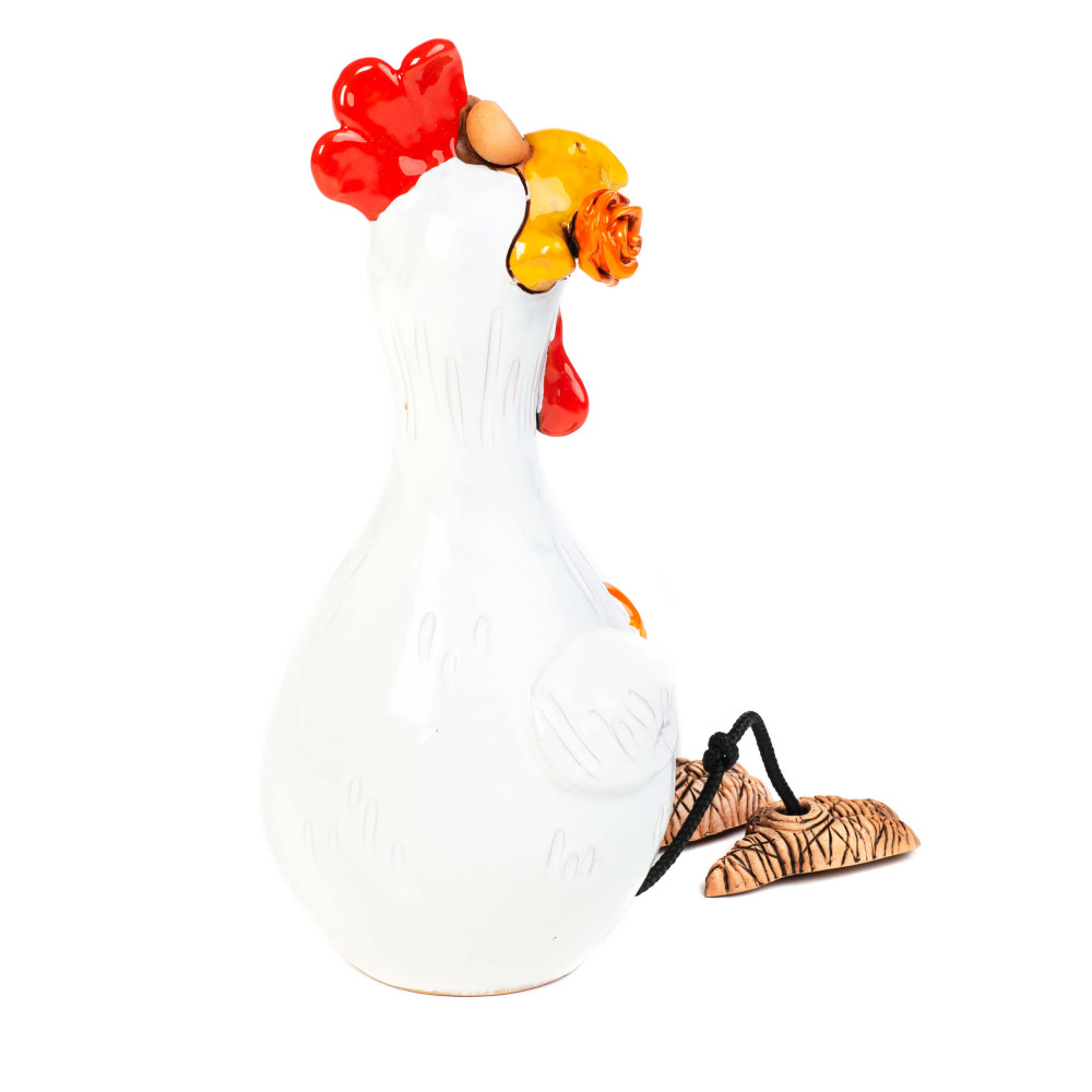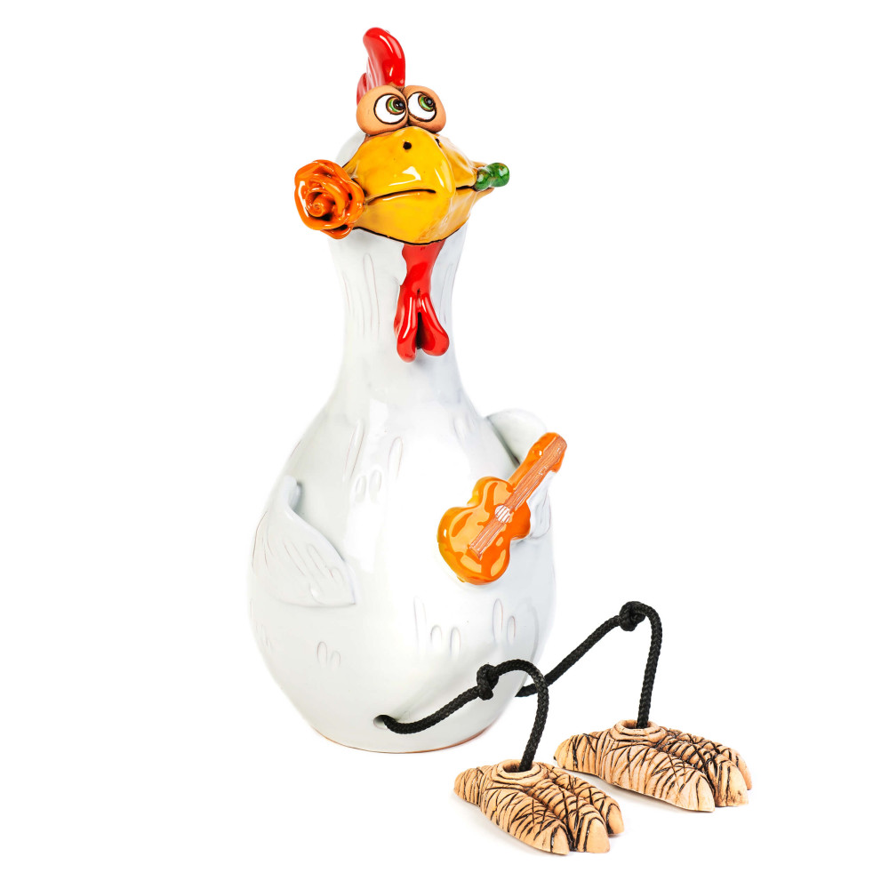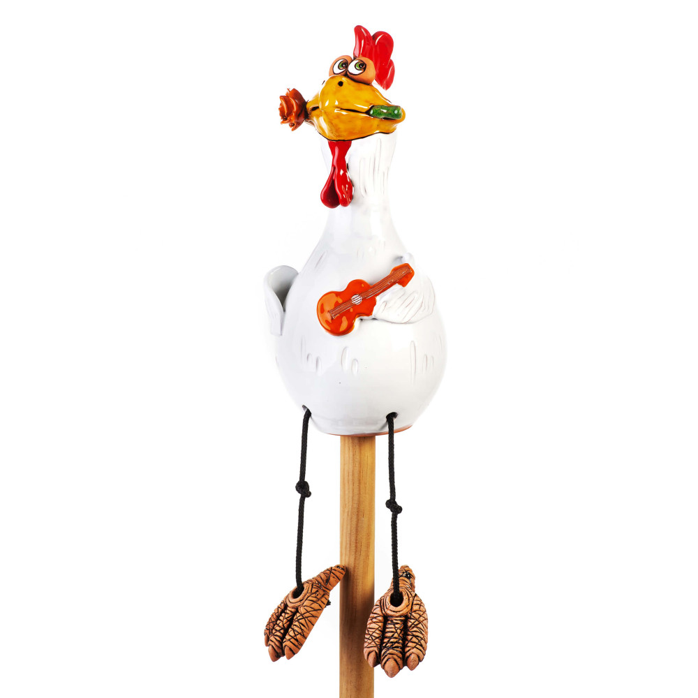 Per angą apačioje galite įdėti vištieną ant poliaus. Viskas ko jums reikia, yra baras, pagamintas iš metalo ar medžio. Tuo pačiu metu keramikos figūra yra ideali kaip krašto sėdynė ant palangės arba baldų gabalas.