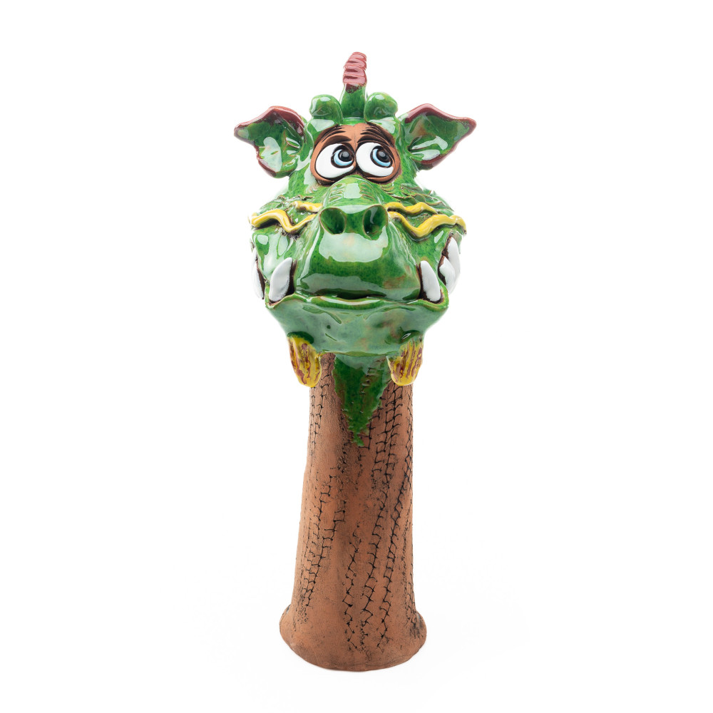 Mielas keraminis drakono galva yra akcentas kaip sodo kištukas kiekviename sode, konservatorijoje arba ant terasoje. Be to, kaip juokinga ir kūrybinė dovana fantazijos gerbėjams ir sodo savininkams, drakono figūra yra tikras akcentas ir suteiks daug įdomių. Mes gaminame figūrą visiškai ranka ir tai, žinoma, yra rankų. Taigi, kiekvienas keramikos figūra yra tikras vienintelis gabalas.