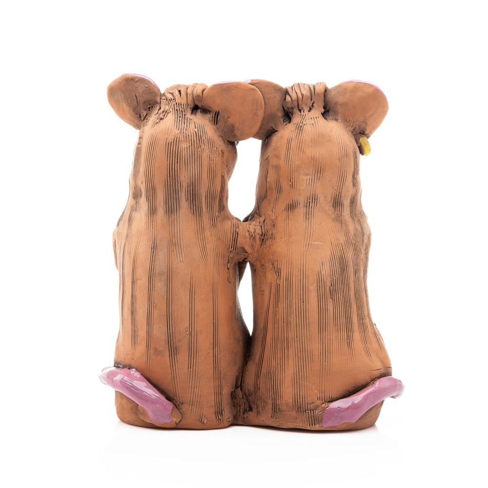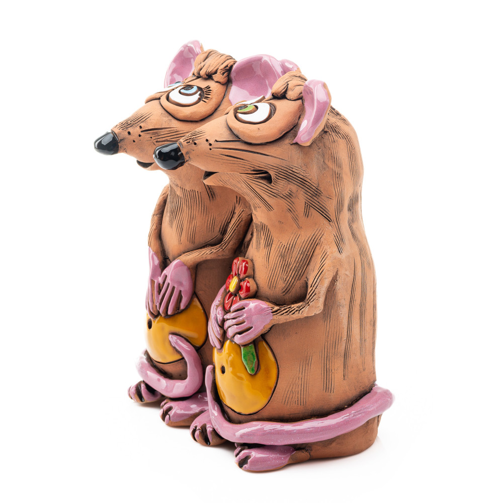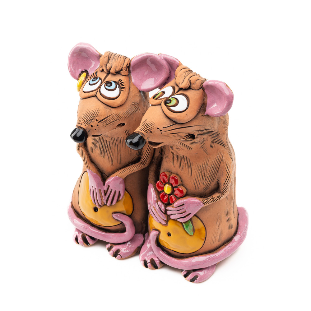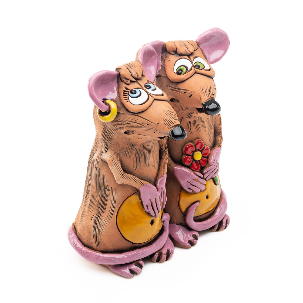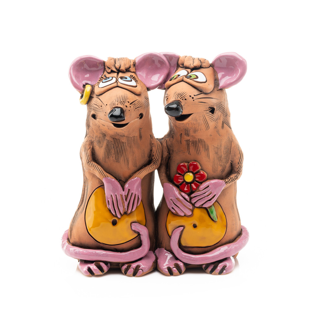 Rankų darbo decofigur yra labai daug dėmesio skiriama detalėms ir, žinoma, rankiniu būdu. Pasijos pelių pora yra puiki, kaip sodo kištukas savo sodo dekoravimu arba tiesiog kaip keramikos figūra jų palangėje arba jų bute.