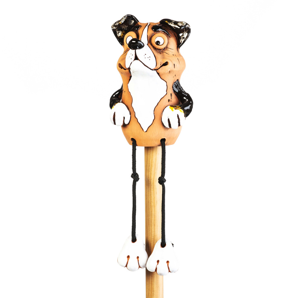 Sodo deco šuo turi skylę apačioje, kad jis būtų naudojamas kaip sodo kištukas. Viskas ko jums reikia, yra mediena arba metalinis strypas. Dėl pakabinamų kojų keramikos figūra taip pat puikiai tinka kaip krašto sėdynė už palangę arba baldų gabalus, taip pat juokingas decofigur namuose.