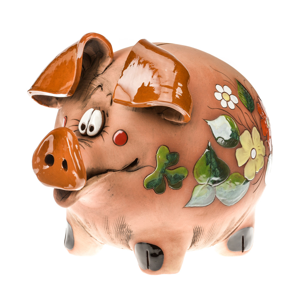 Šis keraminis piggy bankas naudojamas kaip apdailos elementas ne tik fantastišką akį, bet ir kaip piggy banką. Per skylę į žemę ir susijusius guminius kamščius, Piggy bankas yra išsaugotas gyvenime. Puikiai taip pat yra dovana dekoratyviniams ir kiaulienos susitikimams.