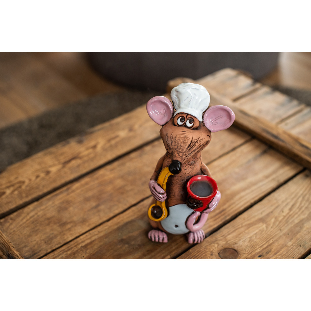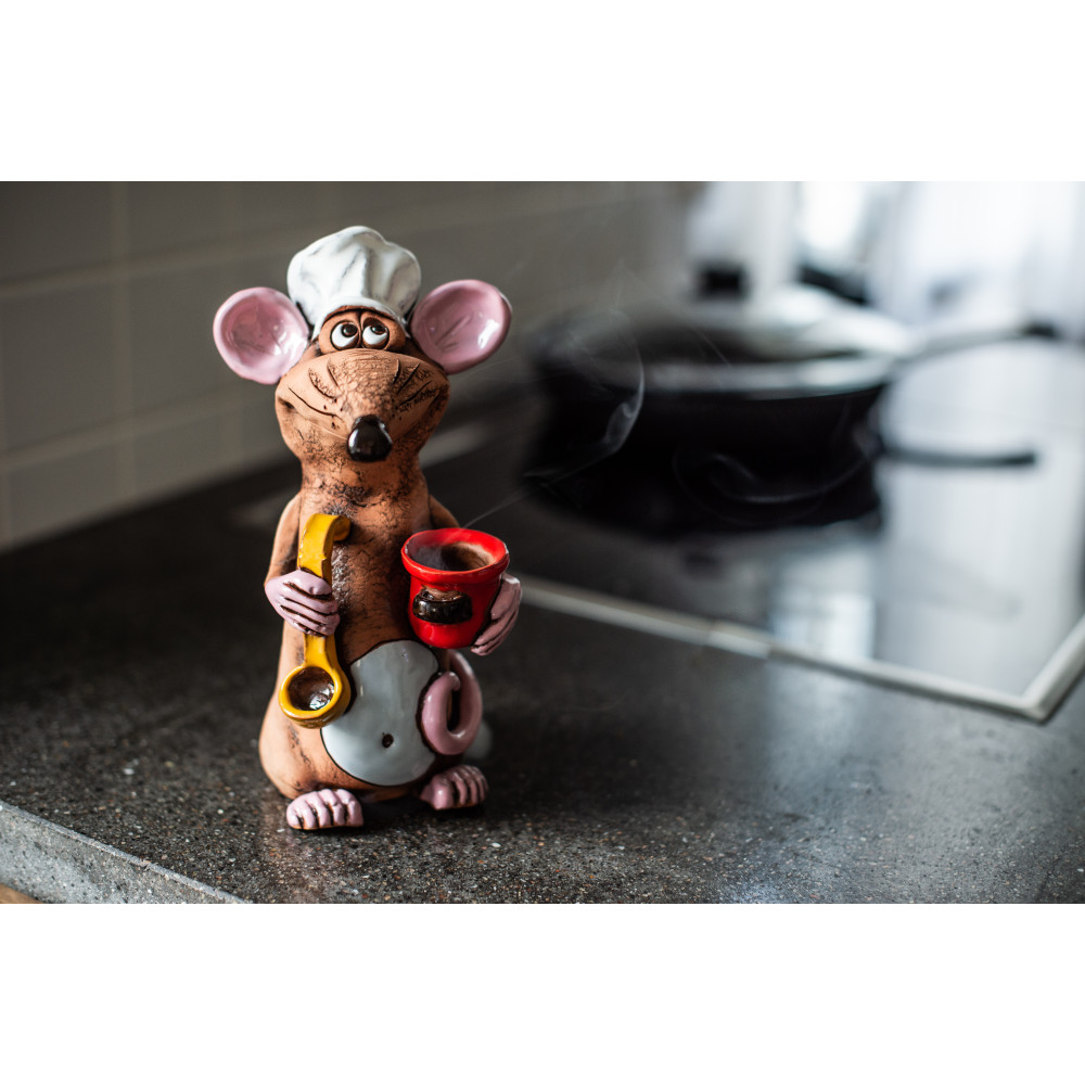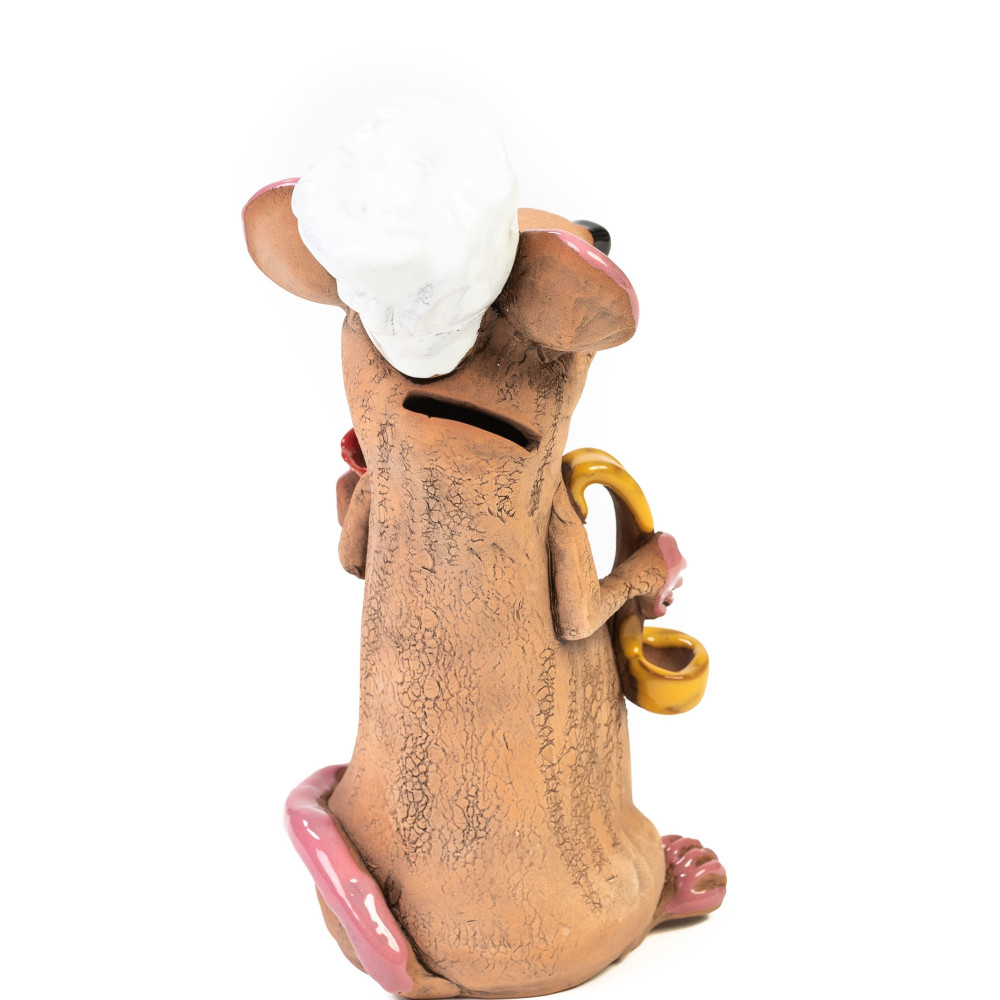 Šis skaičius yra idealus kaip decrofigur virtuvėje ir tuo pačiu metu Piggy Bank ... malonės, taupymo žiurkė Žinoma. Taip pat kaip dovana hobby virėjai arba kaip juokinga dovanų idėja ypatingą progą, keramikos figūra taupanti kambarys yra idealus ir užtikrins entuziazmą.