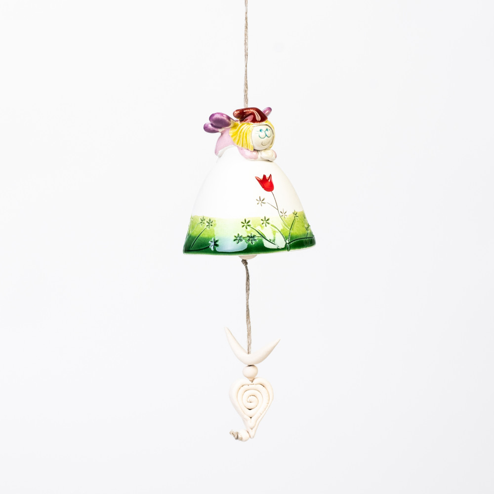 Mažas keraminis varpas su rožine fėja yra maža dekano oda daugeliui skirtingų sričių. Ji yra visiškai ranka ir pagaminta ranka ir gali būti lengvai pakabinti visur, kur norite nustatyti gražų deco akcentą.
