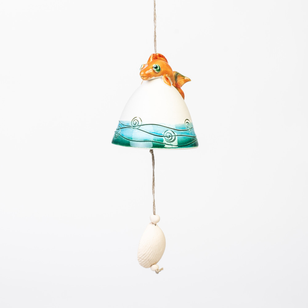 Dėl mažo keramikos varpas patogiai padarė žuvį. Tai daro varpą ne tik akvariumo savininkams akcentu, bet tiems, kurie ieško juokinga apdailos idėja, vėjo guma ar kita graži vieta. Varpelis yra rankų darbo ir visiškai nudažytas ranka.