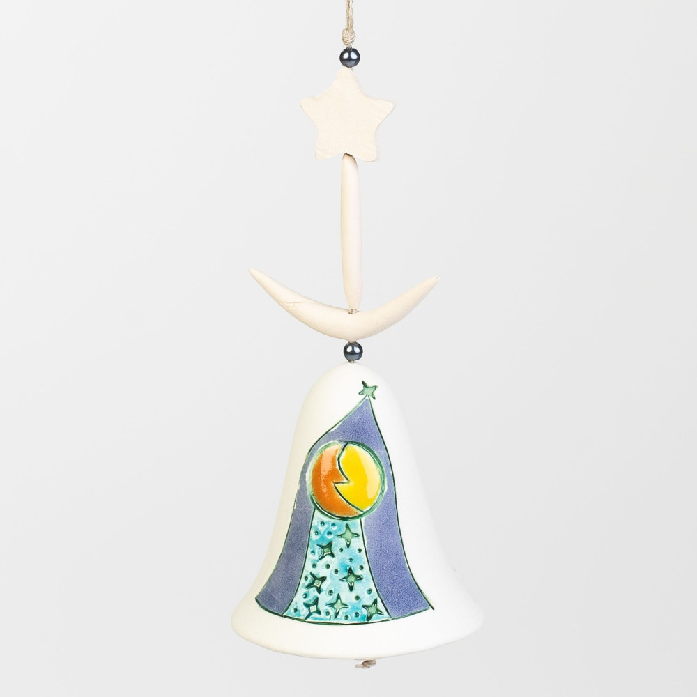 Mažasis varpas su Kalėdų motyvais, pagamintais iš keramikos, yra pagamintas į mylintis rankų darbo ir visiškai nudažytas ranka. Jūs galite lengvai pakabinti jus bet kur, ypač kaip Kalėdų eglutės papuošalai, tai, žinoma, yra idealus.