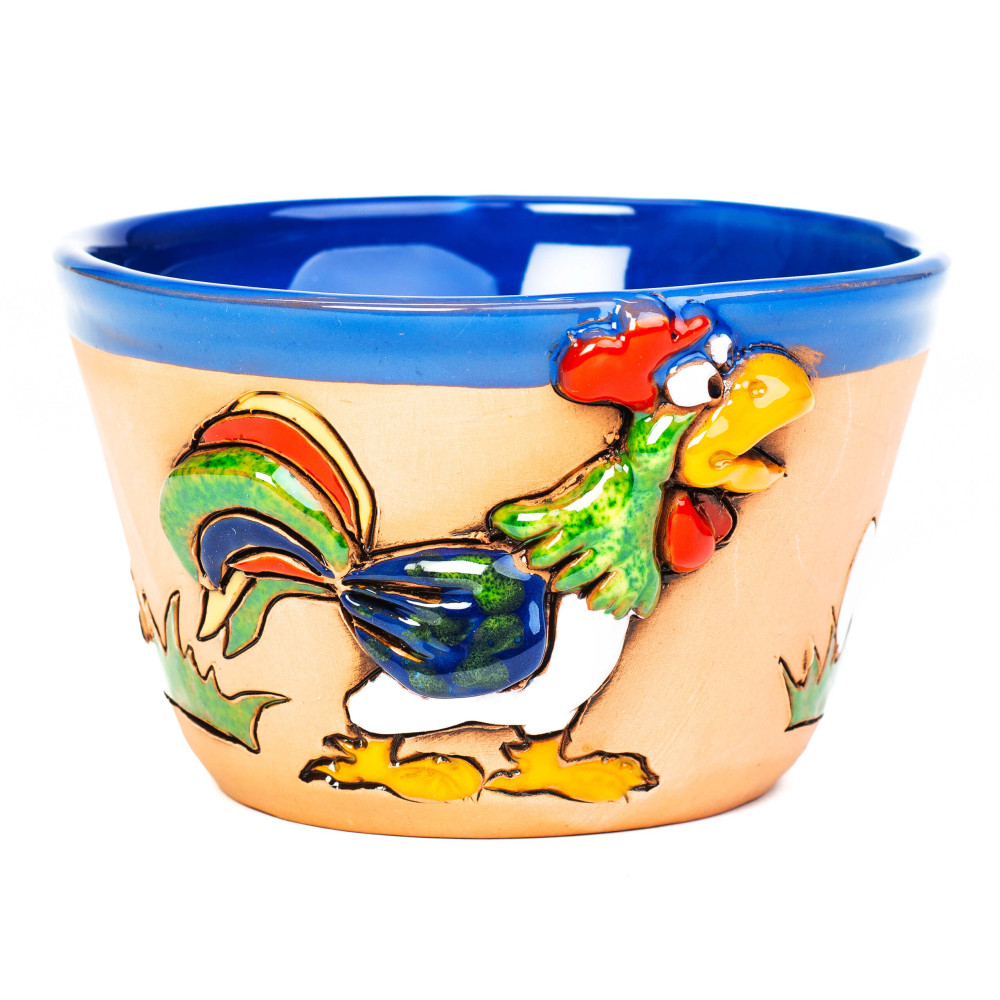 Graviruotas keramikos padarytas rankoje ir su dideliu dėmesį į detales su 3D gyvūnų figūra, pagaminta iš keramikos yra tinkama kaip sriuba korpuso, užkandžių lukštais, desertas dubuo arba salotų. Per mylintį dizainą ji taip pat daro gerą figūrą kaip stalo apdaila ir idealiai tinka kaip juokinga dovana mylimam žmogui. Ypač kaip vaikų granulė, tai idealiai tinka, nes gaidys dirbo trijų dimensijų ir daro dubenį ypač gripipy ir tuo pačiu metu.
