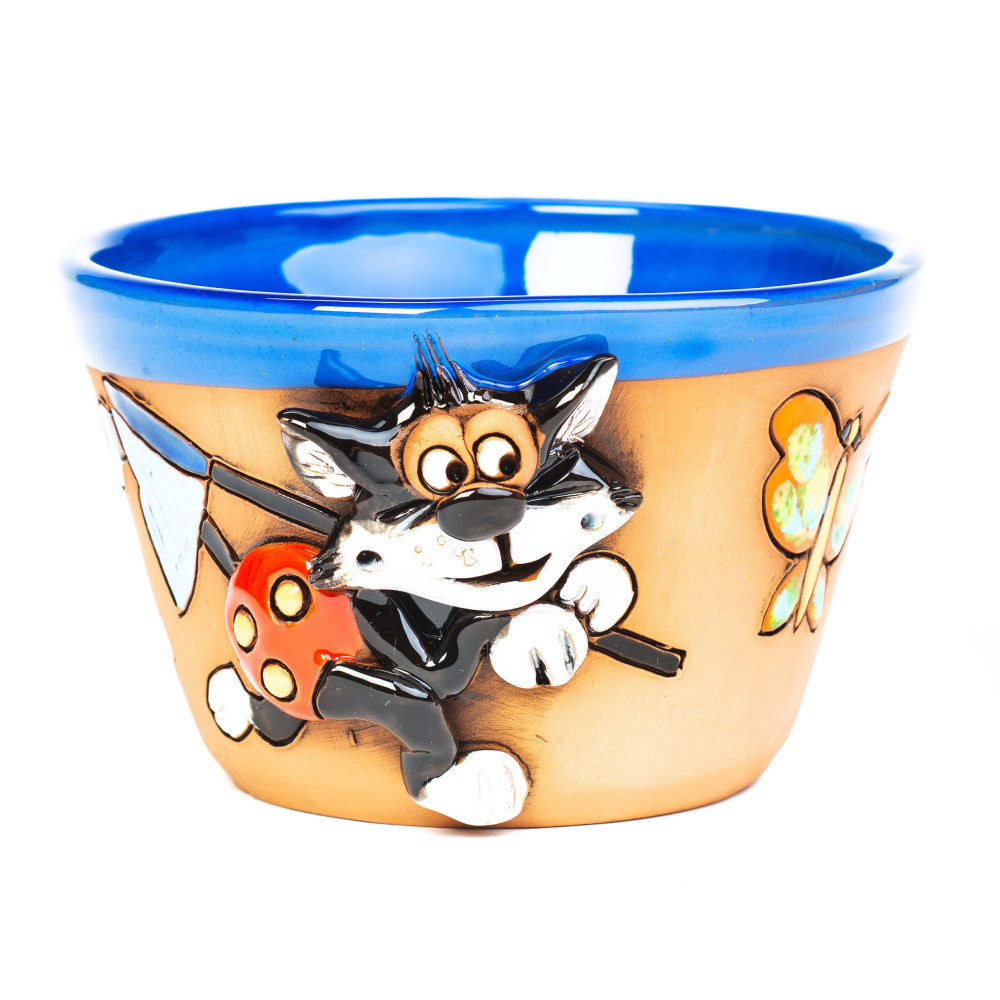 Keraminis dubuo, pagamintas rankoje ir su dideliu dėmesiu detalėms yra vienodai tinka kaip cerealspeis, sriubos dubenė arba užkandžių ir deserto dubenys. Per mylinčią dizainą rankų darbo metu ji taip pat yra tikra akcentas kaip stalo apdaila ir dovana katės draugams. Ypač kaip granulė vaikams, tai yra puikus per trijų dimensijų dizaino gyvūno figūra. Katė yra plastikinė ir stabdo dada per plokščią paviršių.