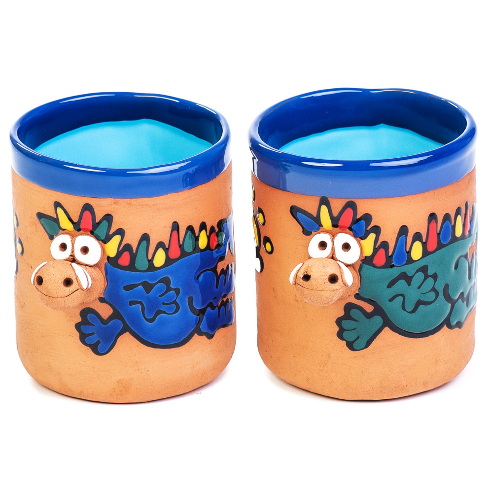Mistinėje mėlyna spalva su spalvingomis pataisomis, draugiškas drakonas užtikrina gerą nuotaiką mūsų motyvų puodelyje. Jis laikomas laimingu vaisingumo žavesiu ir simboliu, ką norite?