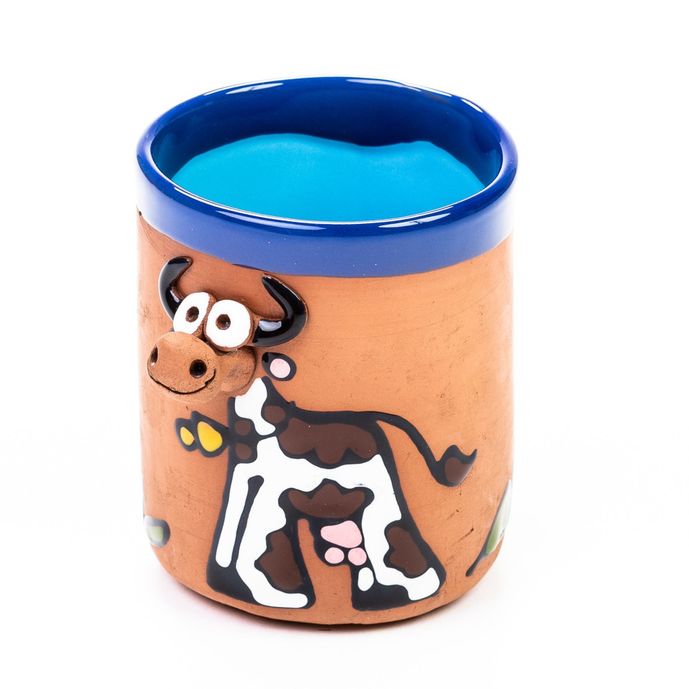 Indijoje šventas ir tuo pačiu metu maisto ir gerovės simbolis: karvė turi daug veidų. Ruda karvė mūsų keramikų puodelyje suvaidina jus šypsena ant lūpų ir su savo linksmumu.