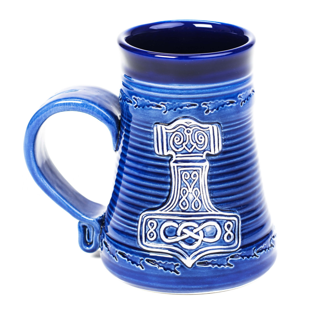 Rankų darbo keraminis puodelis su plastikiniu "Nordic Thundotgott Thor" motyvo yra ypač kiekviename viduramžiais ir vyno festivalyje tikra akcentas. Jis yra indaplovė, ir jis gali būti šildomas mikrobangų krosnelėje. Jei ieškote dovanos ar specialaus susitikimo puodelio, tai rasite čia.
