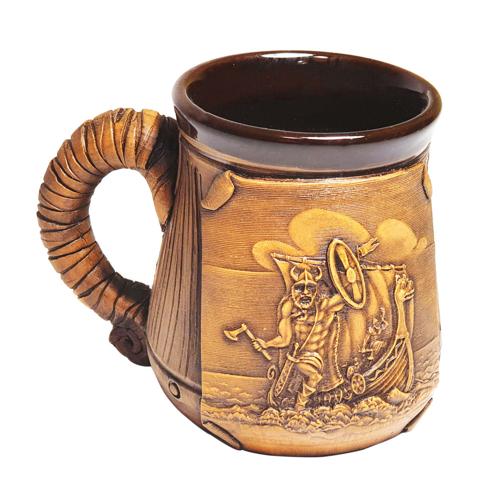 Vidutinio dydžio vikingų geriamojo puodelio su buriavimo laivu yra akcentas už viduramžių gerbėjų ir draugų Nordic mitologijos. Jis yra rankų darbo ir rankų. Jį galite naudoti kaip su "Ret" geriamojo puodelio, bet, žinoma, kaip kavos puodelis ar mažas alaus puodelis.